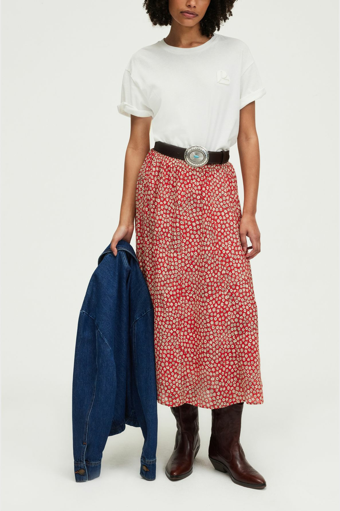 Laissez-vous séduire par l’élégance fluide de cette jupe midi imprimée, parfaite pour sublimer votre silhouette avec légèreté et style. Son motif floral apporte une touche de fraîcheur et de féminité à toutes vos tenues.