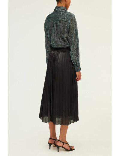 Sublimez votre allure avec cette jupe midi satinée plissée, alliant élégance et modernité pour un style affirmé. Une pièce incontournable qui transforme chaque mouvement en une danse de sophistication.