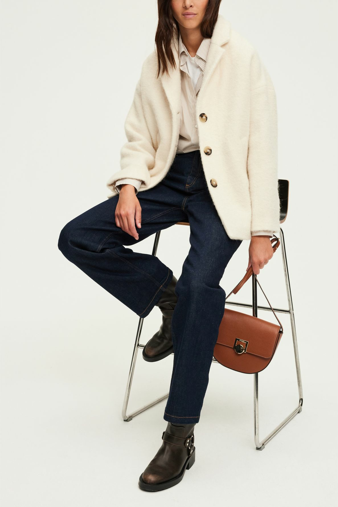 Adoptez l’élégance urbaine avec ce manteau court à l’effet poilu, alliant confort et style intemporel. Sa silhouette droite et ample s’impose comme un incontournable de votre garde-robe hivernale.