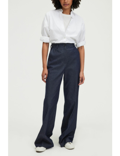 Conçu pour accompagner toutes vos journées, ce pantalon long allie style et praticité. Le pli net le long de la jambe et l’ourlet invisible apportent une finition soignée, tandis que les poches italiennes et passepoilées avec boutons ajoutent une touche fonctionnelle et esthétique. Son denim uni s’adapte facilement à toutes vos tenues, du casual au plus habillé.