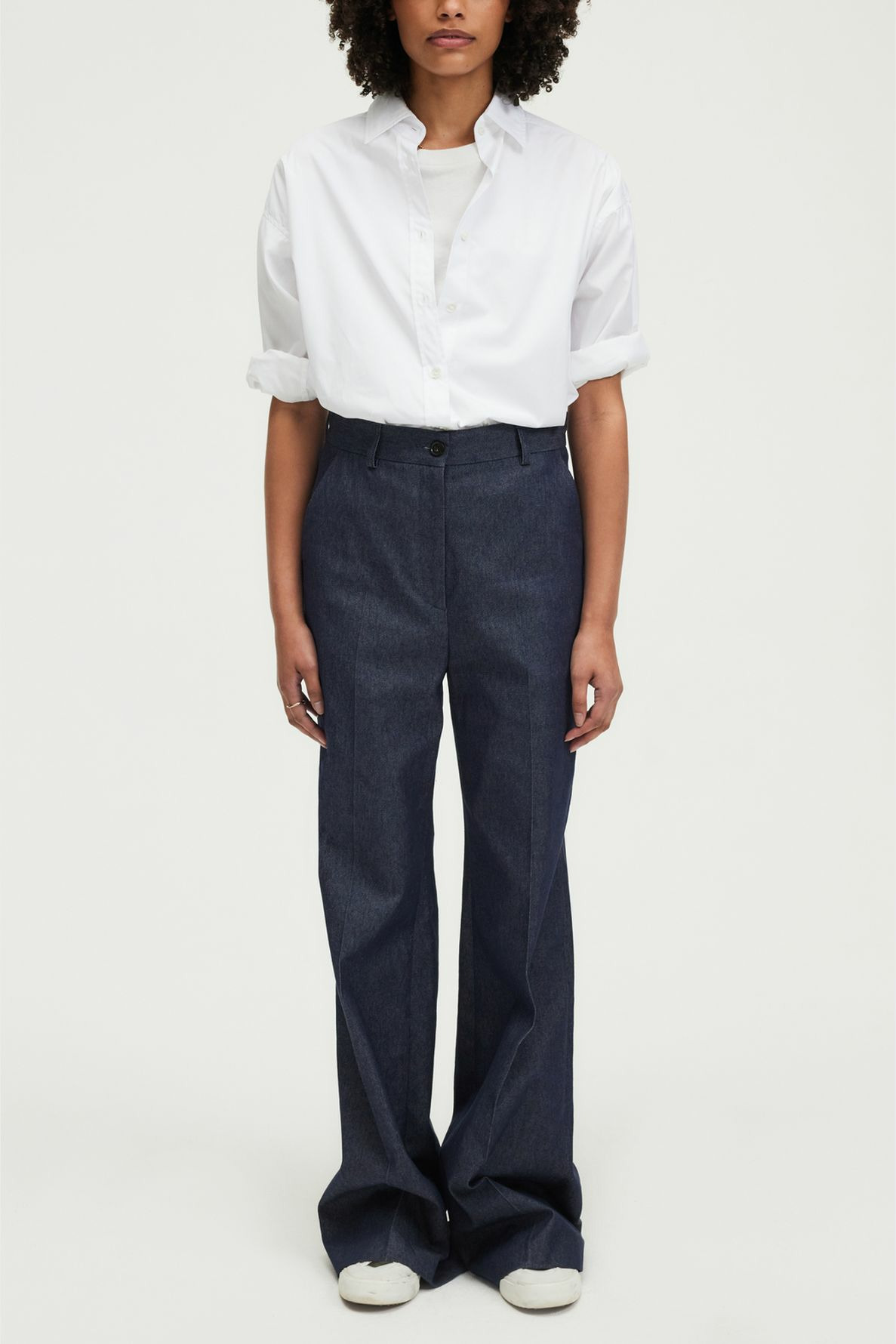 Réponse : Il s’agit d’un pantalon long avec une coupe flare, conçu pour tomber élégamment sur la chaussure grâce à son ourlet invisible.