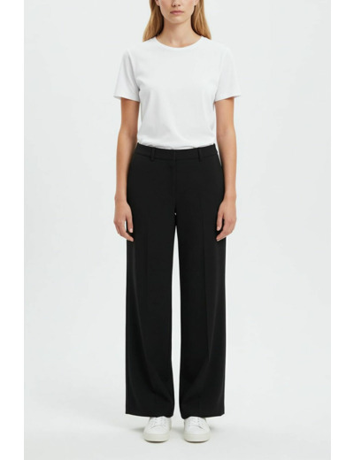 Ce pantalon vous garantit une silhouette affinée grâce à sa taille haute et sa coupe fluide, idéale pour allonger la jambe. Les poches pratiques et discrètes ajoutent du confort sans compromettre le style, tandis que la fermeture invisible assure une finition impeccable. Polyvalent, il s’adapte aussi bien à un cadre professionnel qu’à une tenue décontractée chic.