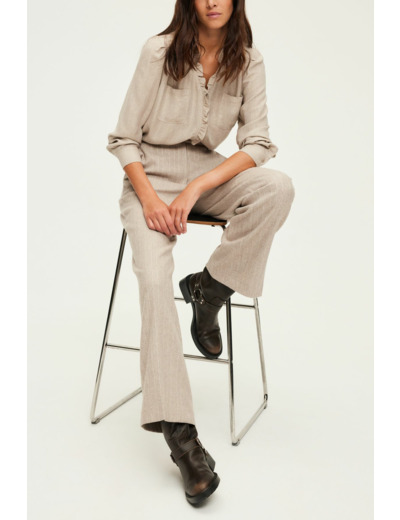 Réponse : Sa coupe large et ses jambes droites offrent une belle aisance et flattent différentes silhouettes, y compris les morphologies rondes.