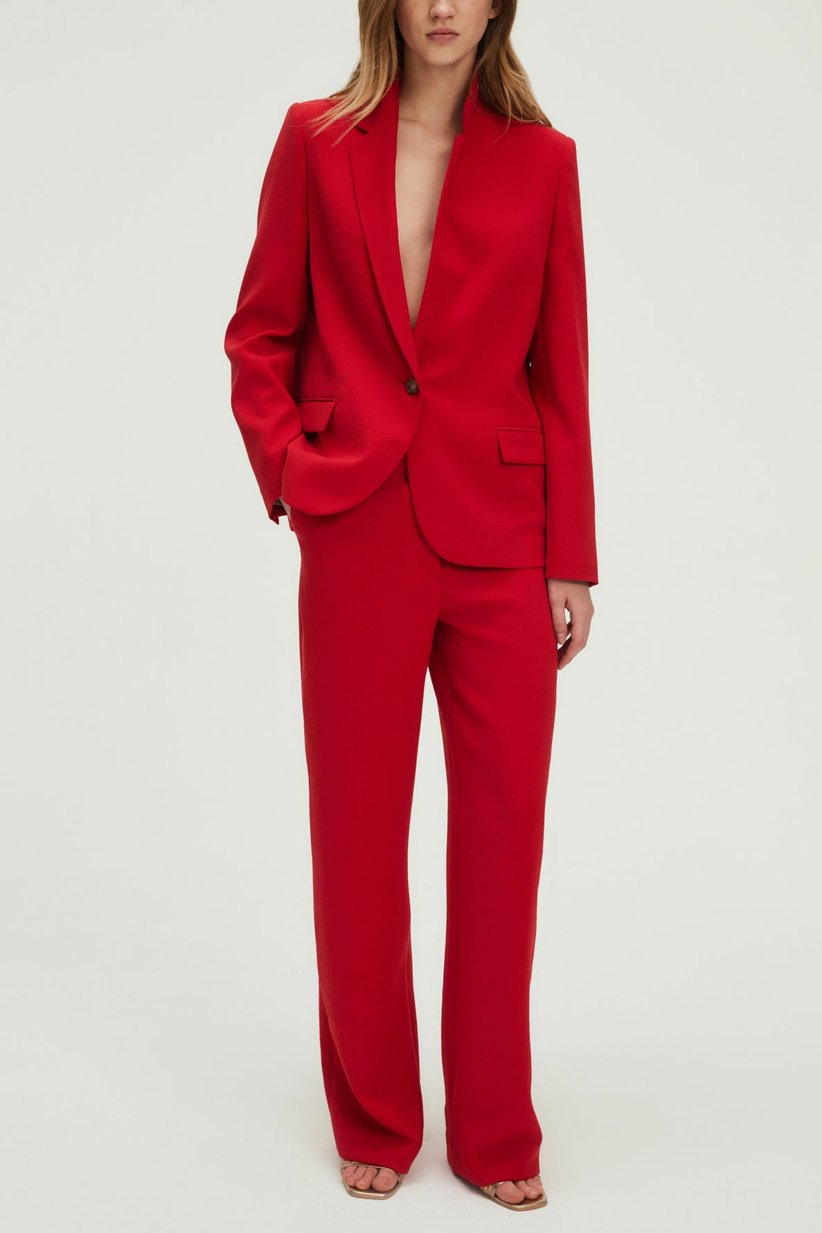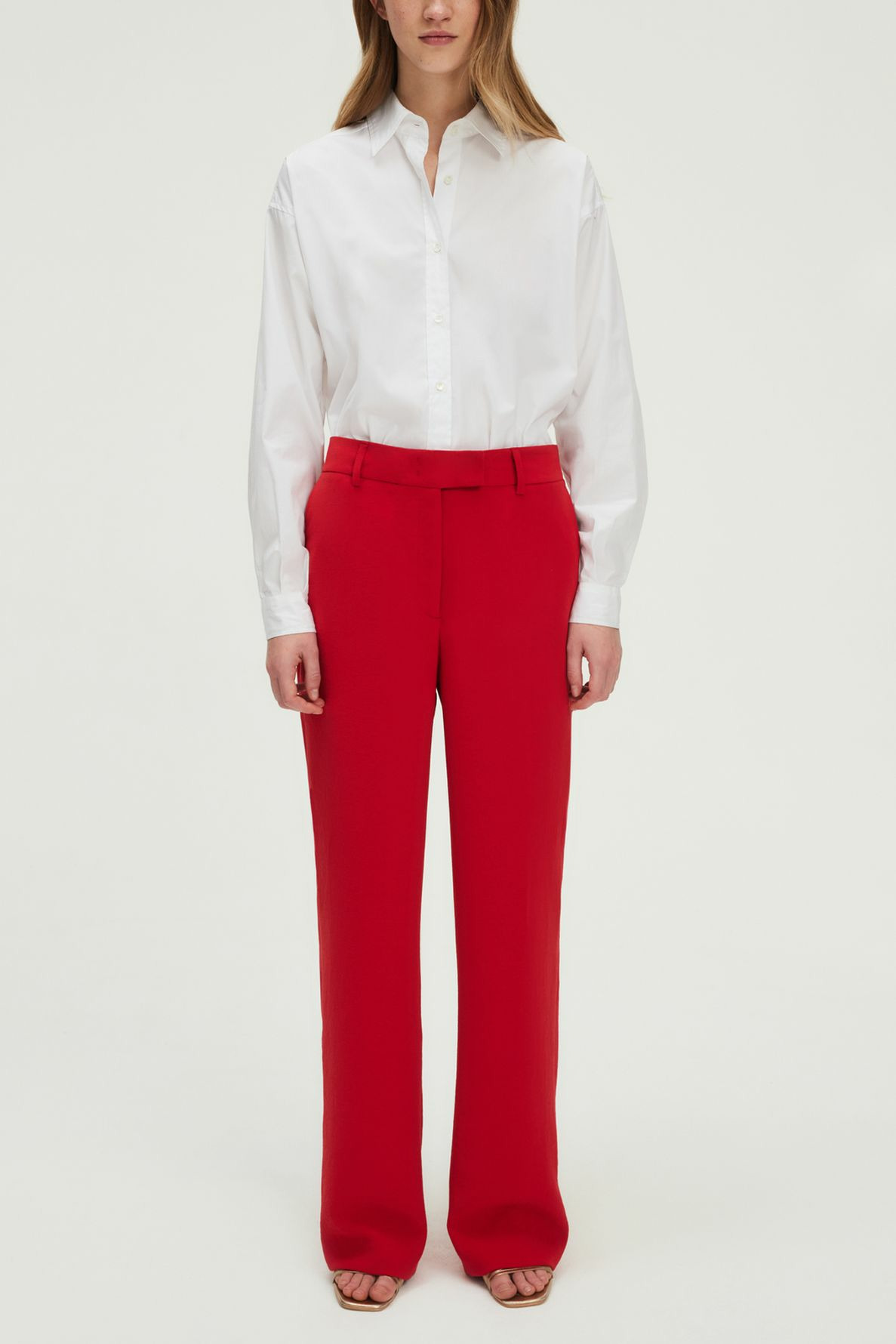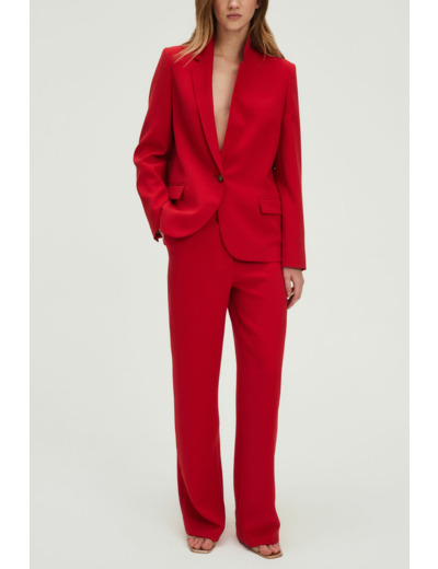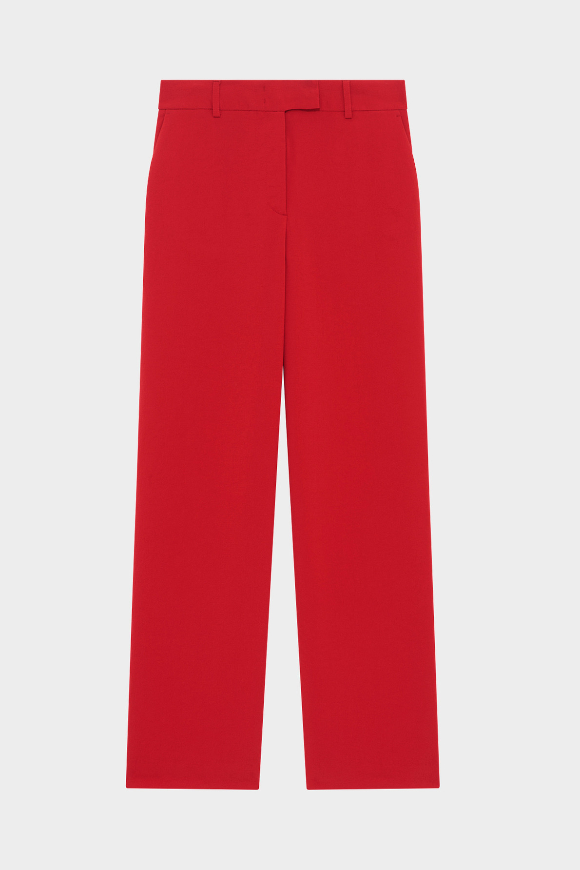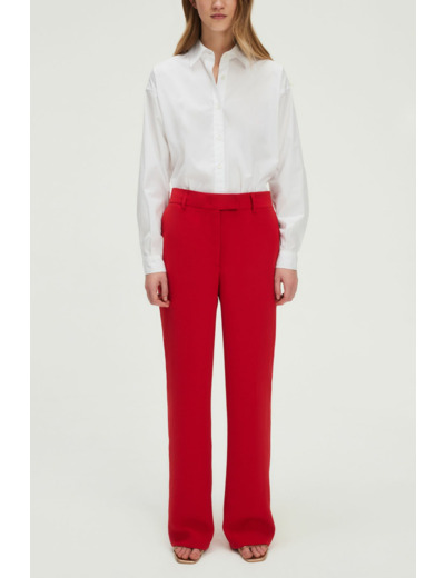 Osez la couleur avec ce pantalon large en crêpe rouge corail, idéal pour dynamiser vos tenues estivales. Sa coupe fluide et élégante allie confort et style avec une touche audacieuse.