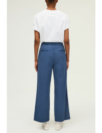 Adoptez l’élégance décontractée avec ce pantalon large en coton et lyocell, décliné dans un bleu indigo profond. Une pièce essentielle pour un look printanier alliant confort et style.