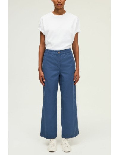 Conçu pour accompagner vos journées avec fluidité, ce pantalon se distingue par sa coupe droite et ample qui valorise toutes les silhouettes. Le tissu uni, doux et respirant, offre une sensation agréable sur la peau tandis que la teinte bleu indigo apporte une touche de fraîcheur et de modernité à vos tenues. Son design épuré s’adapte aussi bien à un cadre professionnel qu’à une sortie décontractée.