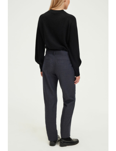 Réponse : Le pantalon présente un motif à petits carreaux, idéal pour un style preppy et sophistiqué.