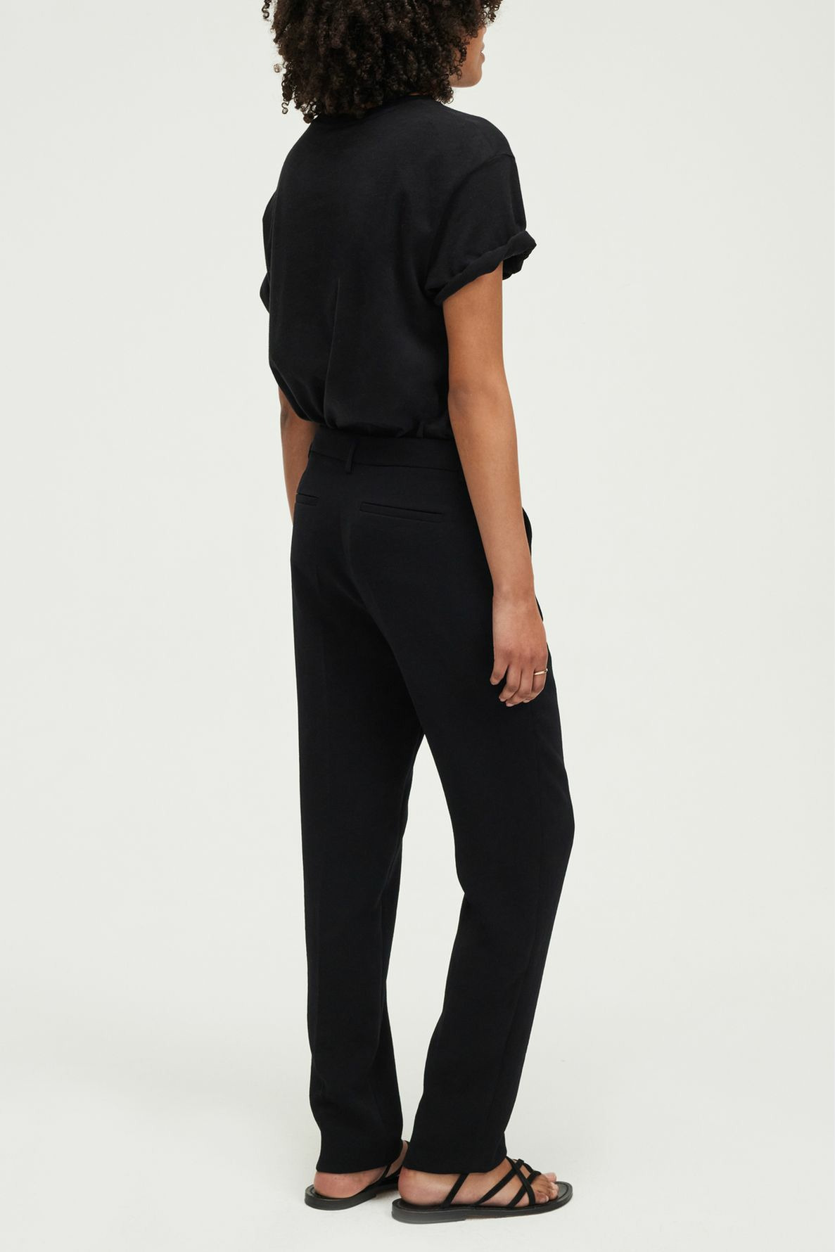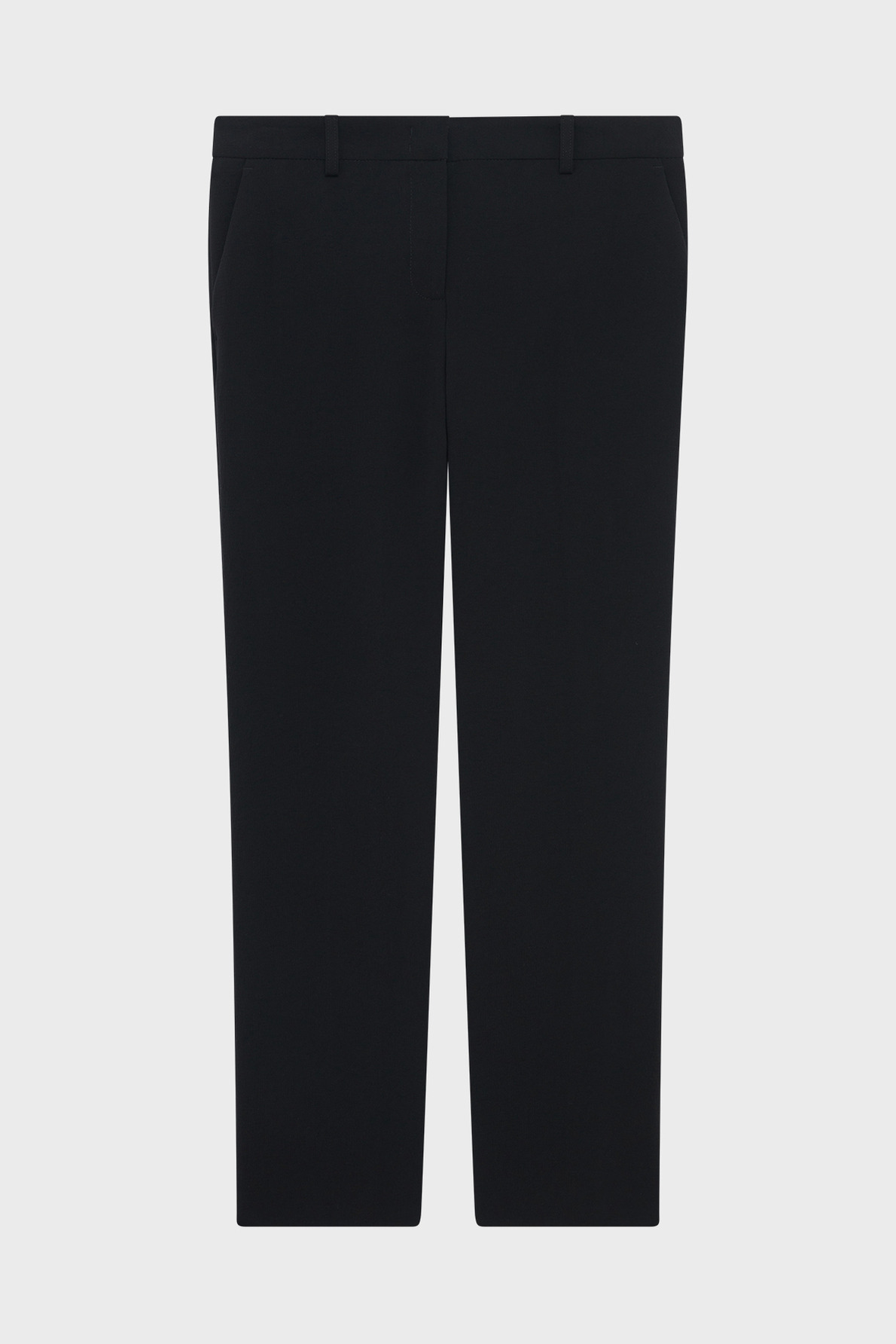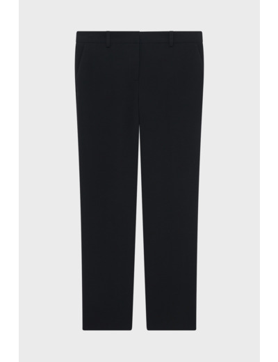 Forme droite et jambes ajustées. Crêpe uni. Pantalon long. Fermeture zippée sous patte avec deux agrafes. Coupe slim. Poches italiennes devant. Poches plates passepoilées au dos. Pli le long de la jambe. Ourlet invisible.