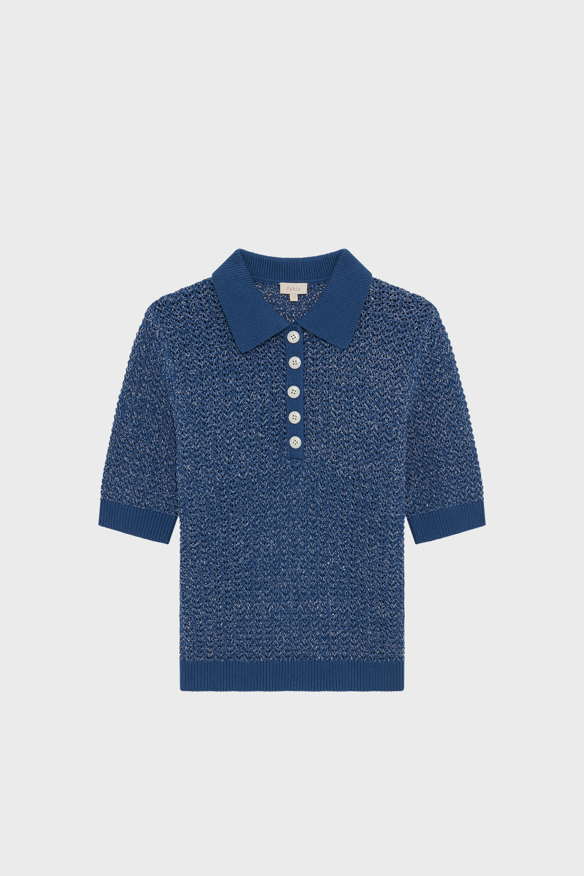 Confectionné en coton et lin, ce polo allie légèreté et respirabilité pour accompagner vos journées avec aisance. Sa forme droite et son motif bleu et blanc chiné apportent une touche subtile et raffinée, idéale pour varier les styles sans effort. Le col polo et l’encolure boutonnée soulignent une silhouette classique, revisitée par des manches courtes et des finitions bord-côtes unies qui renforcent son allure soignée.