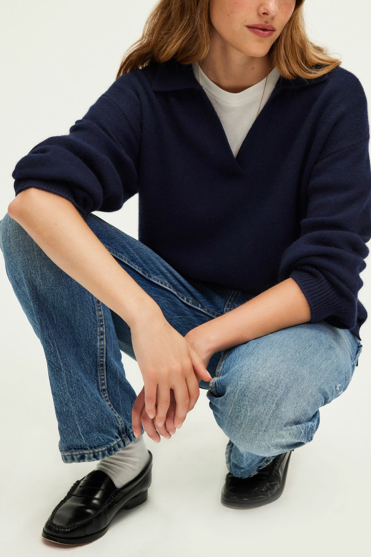 Offrez-vous l’élégance discrète d’un pull en cachemire d’exception. Le col polo marine de ce modèle Pablo incarne la sophistication au quotidien.