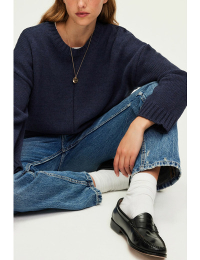 Pull Col Rond En Laine Mélangée Marine - Jossia