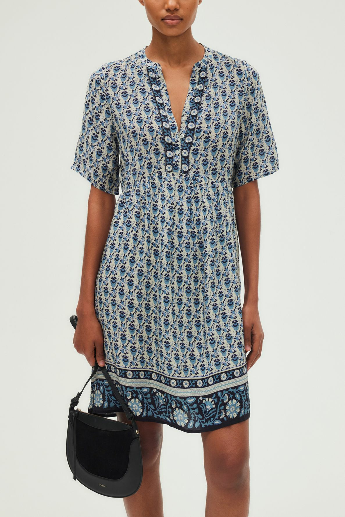 Laissez-vous séduire par l’élégance naturelle de cette robe courte Pablo, où l’imprimé végétal s’invite dans un esprit indien subtil et raffiné. Une pièce légère et fluide, pensée pour accompagner votre quotidien avec style et confort.