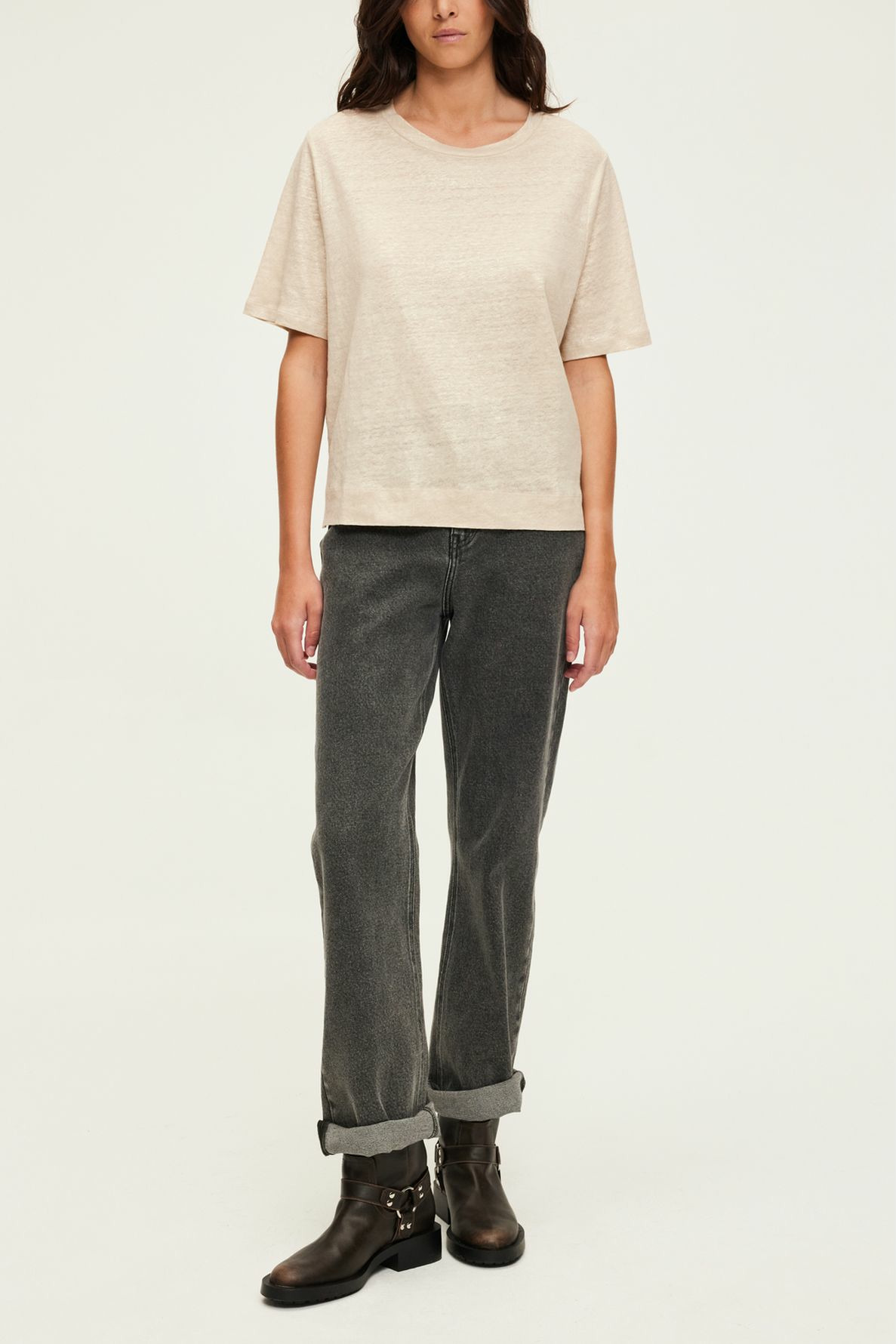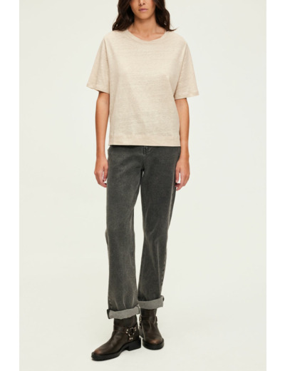 Respirant et léger, ce t-shirt en lin naturel garantit une sensation de fraîcheur tout au long de la journée. Sa coupe ample facilite l’aération et offre une aisance parfaite, idéale pour les chaudes journées d’été ou les looks superposés.
