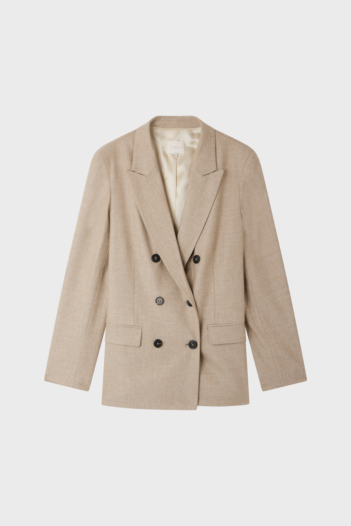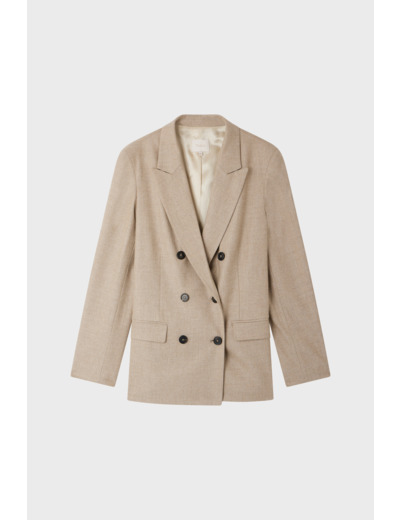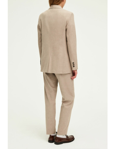 Affirmez votre style avec cette veste de tailleur en flanelle coloris sable, un équilibre parfait entre élégance masculine et féminine. Son boutonnage croisé apporte une touche sophistiquée à votre silhouette.