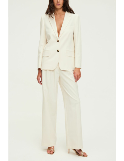 Adoptez l’élégance intemporelle avec cette veste de tailleur écrue signée Pablo, conçue pour sublimer toutes vos tenues. Sa coupe droite et son coloris uni en font un incontournable à porter aussi bien en total look qu’en mix and match.