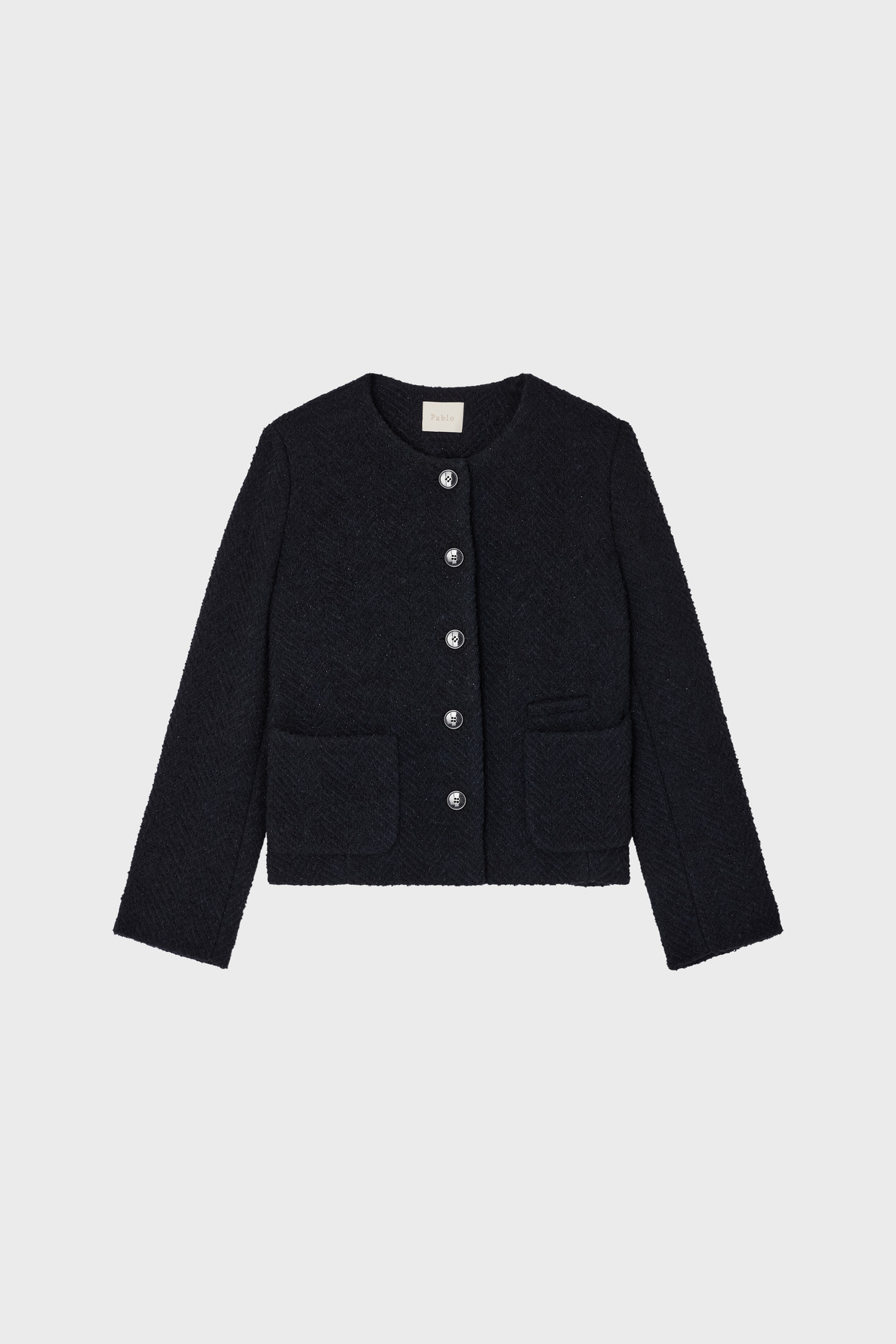 Réponse : Elle est parfaite pour les saisons intermédiaires comme le printemps et l’automne, grâce à sa matière tweed qui offre chaleur et respirabilité.