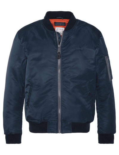 100% nylon pour légèreté et résistance. Fermeture zippée métallique centrale. Deux poches latérales à pression, une poche zippée sur la manche gauche et deux poches intérieures. Bords-côtes au col, poignets et taille. Doublure matelassée orange. Badge Schott NYC sur la manche gauche.
