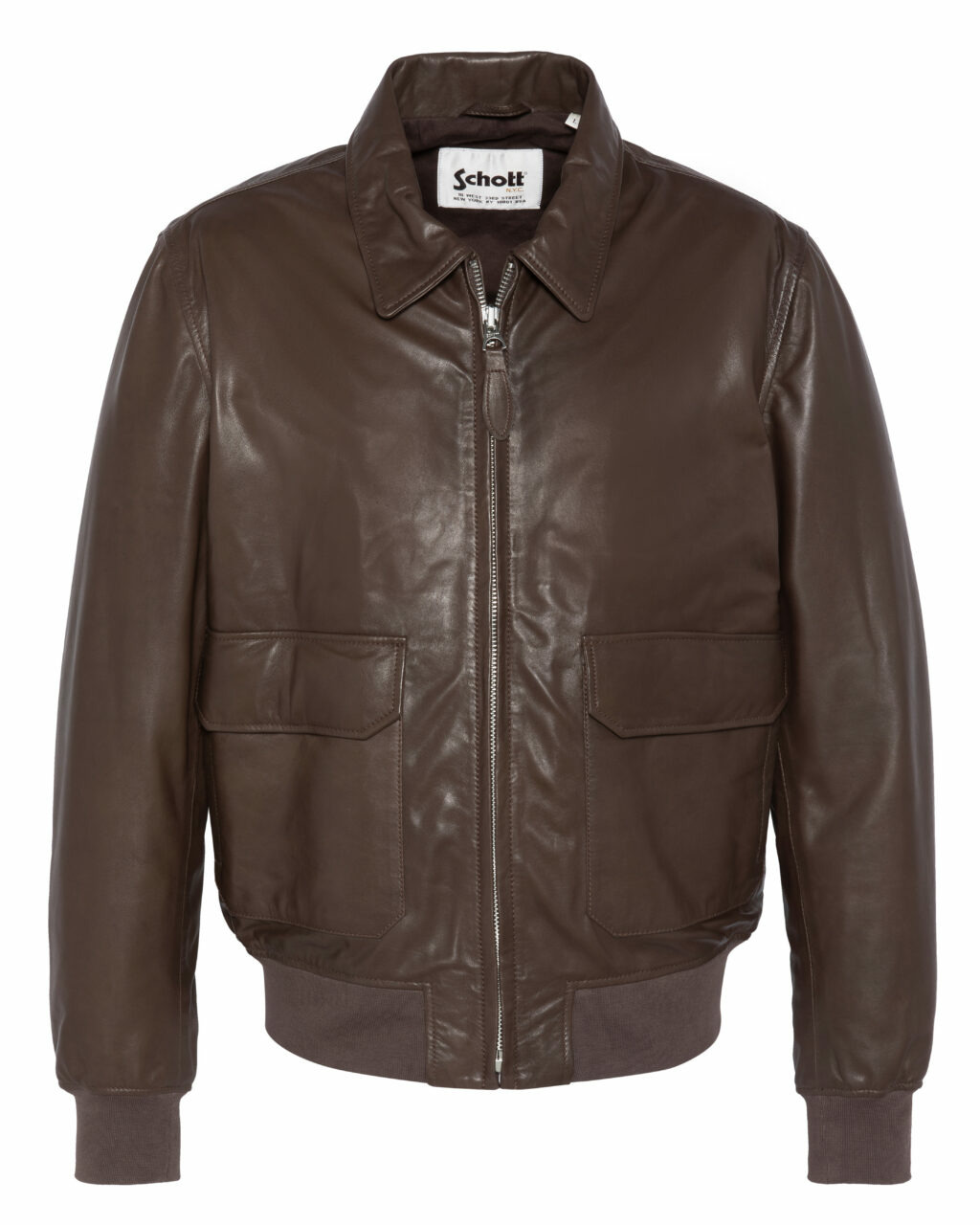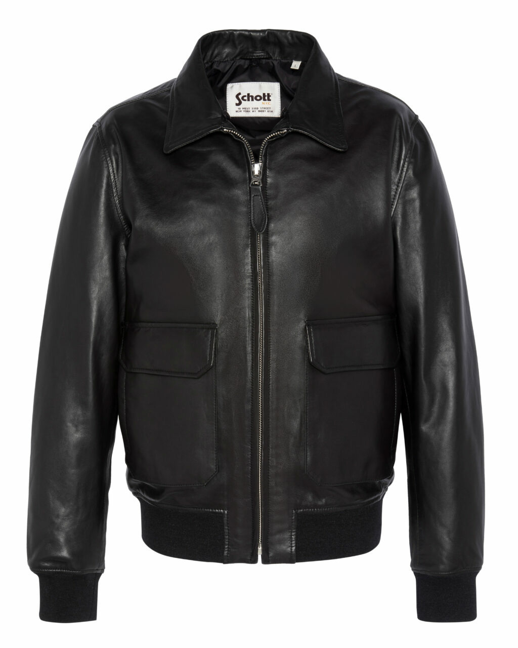 Fabriqué en 100 % cuir d’agneau, il présente deux poches latérales basses à rabat, une fermeture zippée centrale, un col chemise structuré ou amovible en fourrure synthétique selon modèle, ainsi que des poignets et une ceinture en bord-côte ton sur ton. Les coutures aux épaules et l’étiquette Schott NYC cousue à l’intérieur témoignent de son savoir-faire.