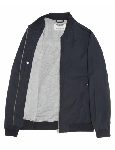 Confectionné dans un mélange technique de 62 % coton et 38 % nylon, ce blouson allie légèreté, respirabilité et résistance. Son col bomber en maille côtelée, ses finitions bord côte aux poignets, à la taille et au col assurent un maintien parfait sans gêne. La fermeture zippée métallique avec curseur logoté et les poches latérales zippées renforcent son côté pratique et sécurisé, tandis que la doublure intérieure en jersey gris apporte douceur et confort.