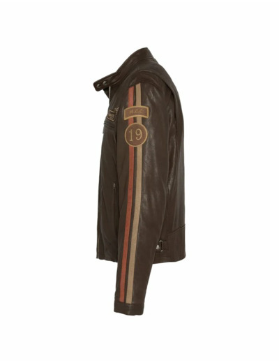 Confectionné en cuir d’agneau souple et durable, ce blouson allie confort et résistance. Les badges distinctifs sur la poitrine et les manches, ainsi que les bandes contrastées, renforcent son identité motard. Pratique et ajustable, il dispose d’un col pressionné, de poignets zippés et pressionnés, ainsi que de sangles de serrage à la taille pour une coupe personnalisée. Sa doublure en nylon et son rembourrage en polyester assurent chaleur et maintien au quotidien.
