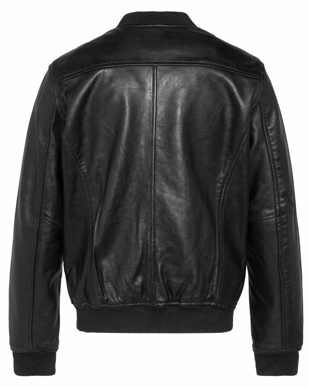 Matière 100 % cuir d’agneau pleine fleur, fermeture centrale zippée argentée, poches latérales invisibles, col, poignets et taille en maille côtelée pour un ajustement parfait. Coupe droite avec finitions travaillées, inspirée des bombers classiques.