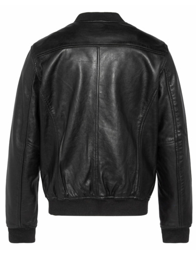 Confectionné en cuir d’agneau pleine fleur, il offre une souplesse naturelle et un toucher doux, sublimé par un aspect légèrement patiné. Son col officier côtelé, ses poignets et sa taille en maille bord-côte structurent la silhouette tout en garantissant confort et maintien. La fermeture zippée métallique apparente et les poches latérales discrètes renforcent son design épuré et fonctionnel.