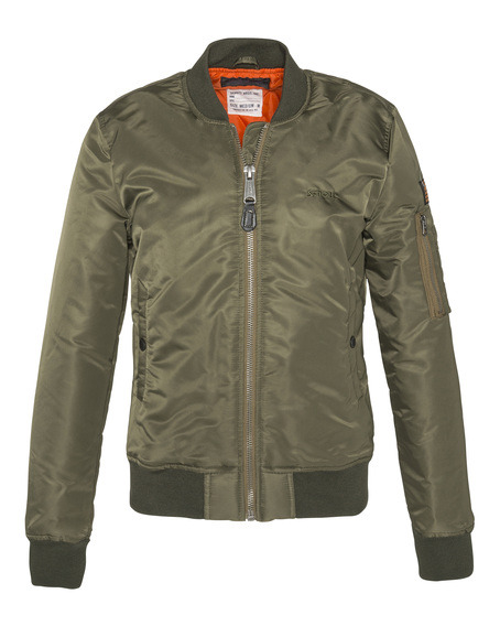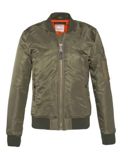 Confectionné en 100% nylon pour l’extérieur et la doublure, avec un garnissage en polyester, ce bomber est équipé d’une fermeture éclair métallique solide. Il dispose de deux poches basses à bouton pression, deux poches intérieures à pression et une poche zippée sur la manche gauche pour un rangement sécurisé.