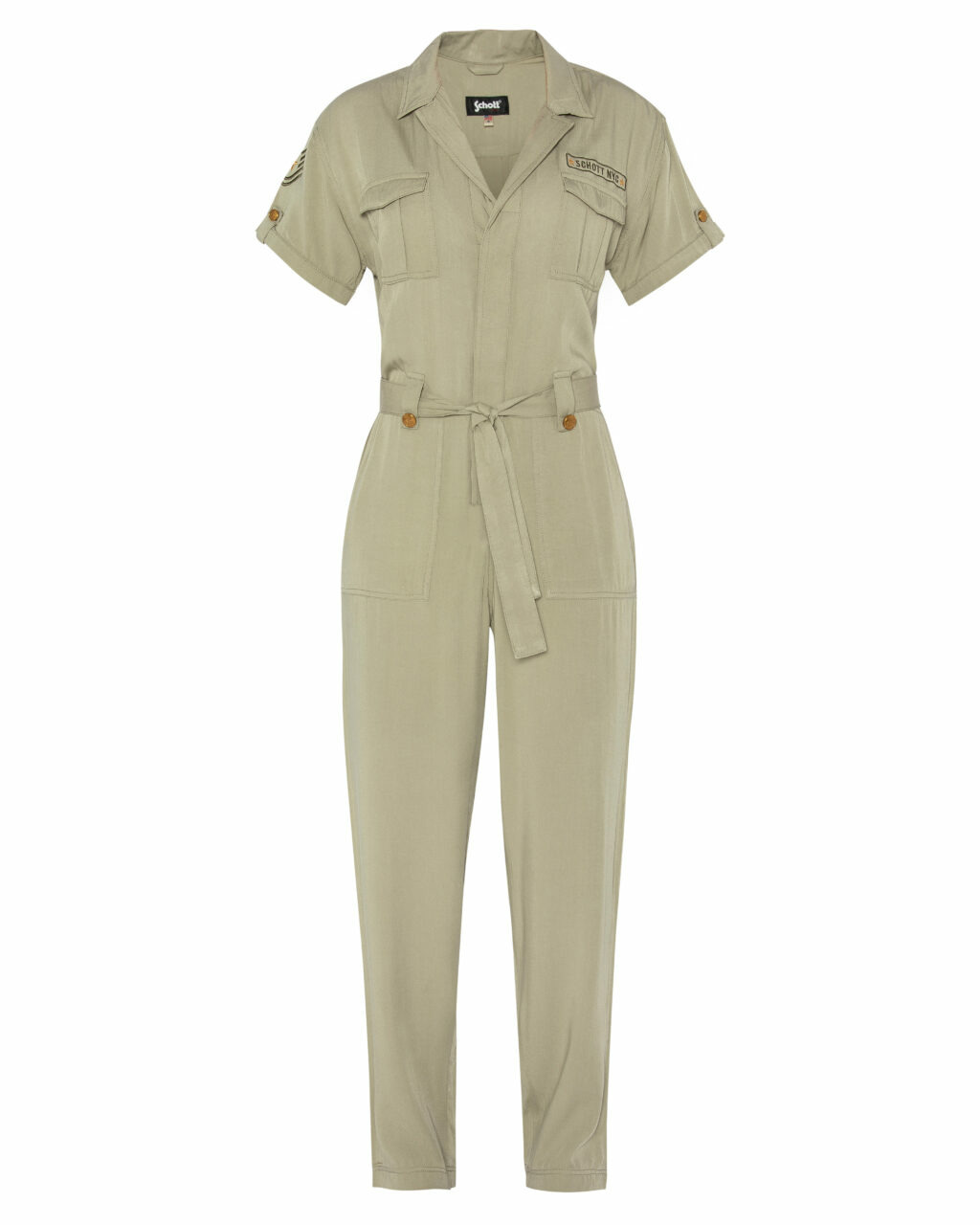 Adoptez l’allure audacieuse et féminine avec la combinaison fluide à manches courtes TRJAMELIA70W de Schott NYC. Une pièce au style militaire revisité qui affirme votre caractère avec élégance.
