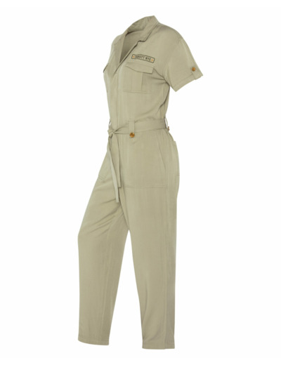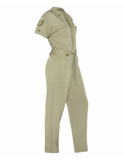 Cette combinaison se distingue par sa coupe droite structurée et ses finitions vintage, incarnant l’esprit workwear avec une touche contemporaine. La matière fluide en viscose OEKO-TEX® garantit un confort optimal et une liberté de mouvement, tandis que la ceinture ton sur ton souligne la taille avec précision. Les manches retroussables maintenues par pattes boutonnées offrent une polyvalence adaptée à toutes les envies et saisons.