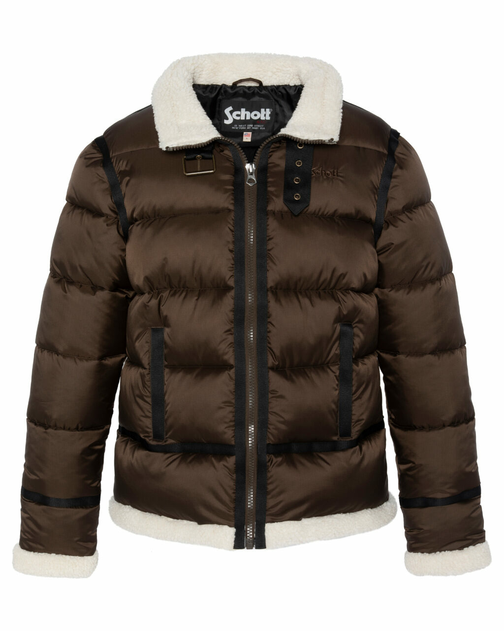 Alliez style aérien et chaleur optimale avec la doudoune esprit bombardier IDAK de Schott NYC. Une pièce robuste et élégante pensée pour affronter les froids avec une allure affirmée.
