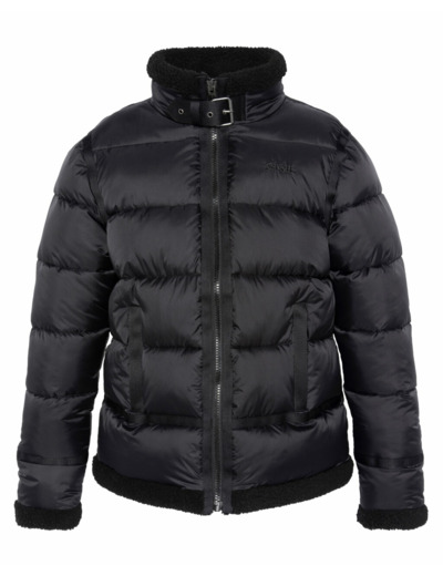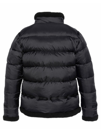 Conçue avec un matelassage uniforme et un col sherpa doux, cette doudoune offre un volume équilibré et une isolation efficace contre le froid. Sa fermeture zippée frontale s’accompagne d’une boucle métallique ajustable au col, rappelant l’esthétique des blousons d’aviation. Les finitions sherpa aux poignets et au bas renforcent la sensation de chaleur, tandis que le logo brodé sur la poitrine signe discrètement son authenticité.