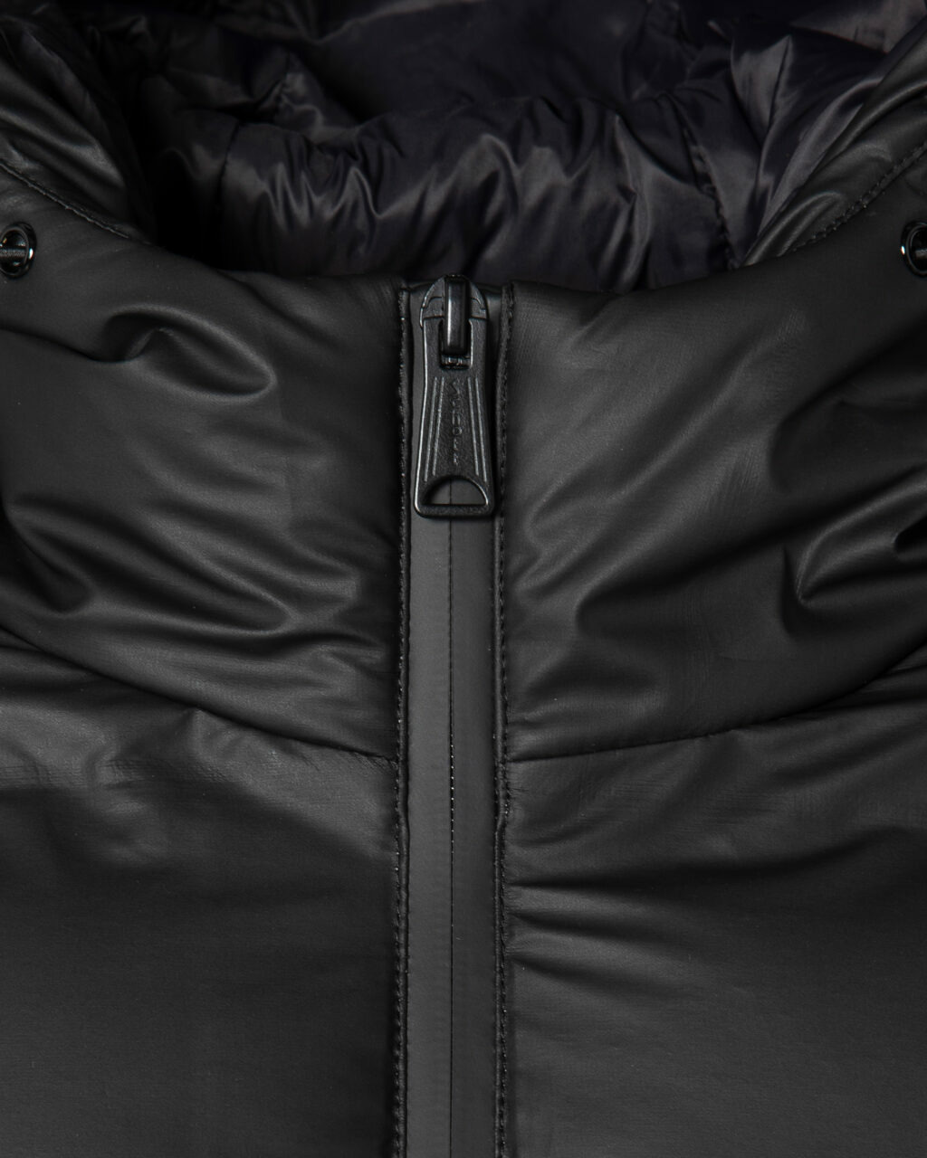 Confectionnée en 50 % polyester et 50 % polyuréthane, avec une doublure 100 % nylon et un rembourrage 100 % polyester, cette doudoune offre une résistance optimale aux éléments. Elle dispose d’une fermeture zippée double curseur étanche, de deux poches latérales zippées doublées micropolaire, d’une poche intérieure zippée et d’une poche intérieure pressionnée. La finition comprend une capuche fixe, un badge Schott NYC® sur la manche gauche, des poignets bord-côte et un cordon de serrage au bas du vêtement.