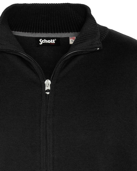 Fermeture zippée intégrale, col montant côtelé, finitions bord-côte aux poignets et à la taille, logo Schott NYC brodé sur la manche. Matière 100% coton pour un toucher doux et une tenue impeccable.