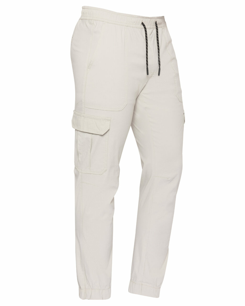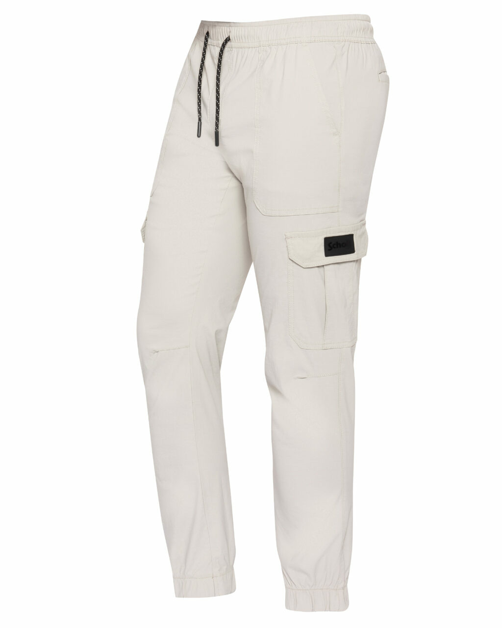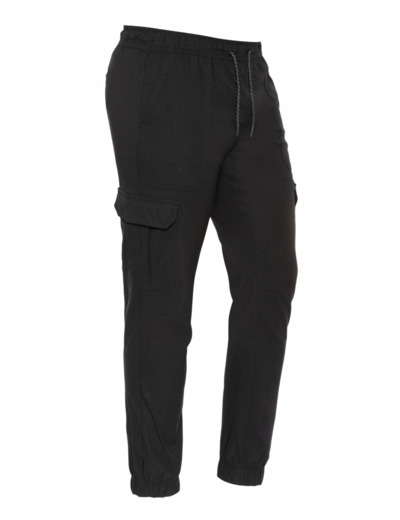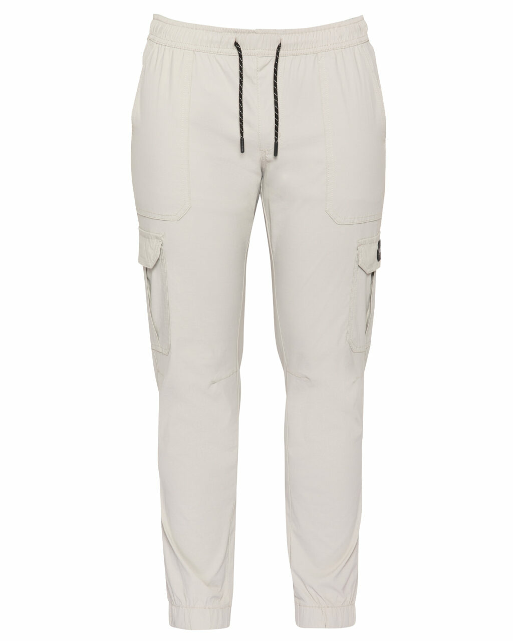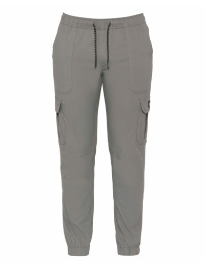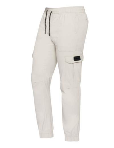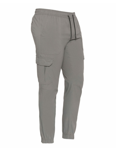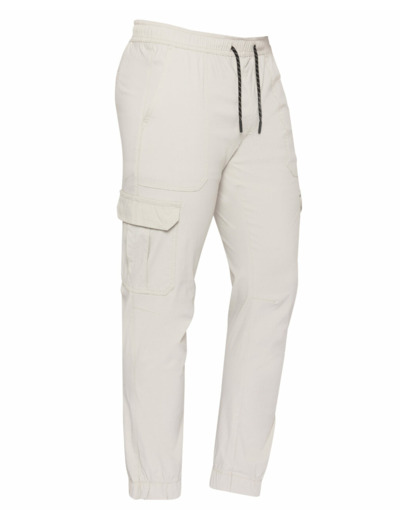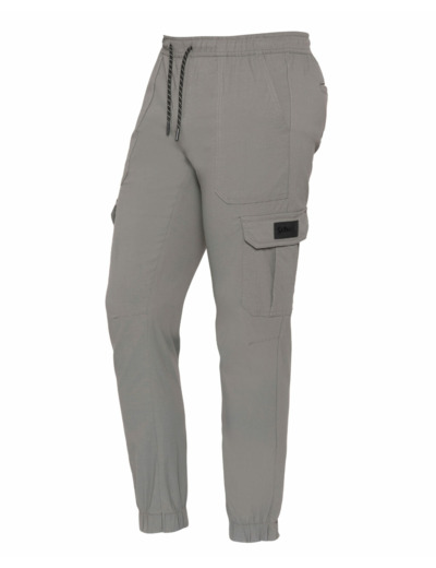 Fabriqué à 95% en nylon et 5% en lycra, ce pantalon combine robustesse et élasticité. Il dispose d’une taille élastique avec cordon de serrage, de bas de jambes élastiqués et de plusieurs poches pratiques pour un usage quotidien.