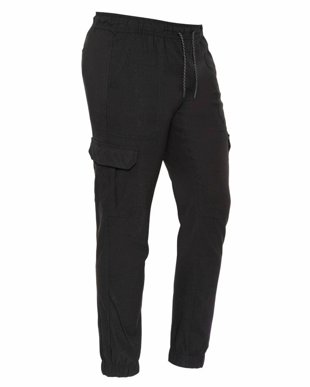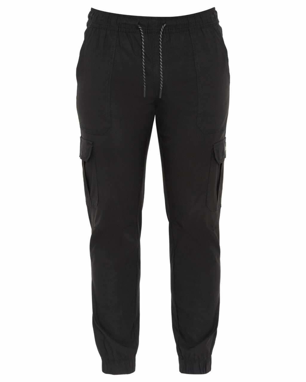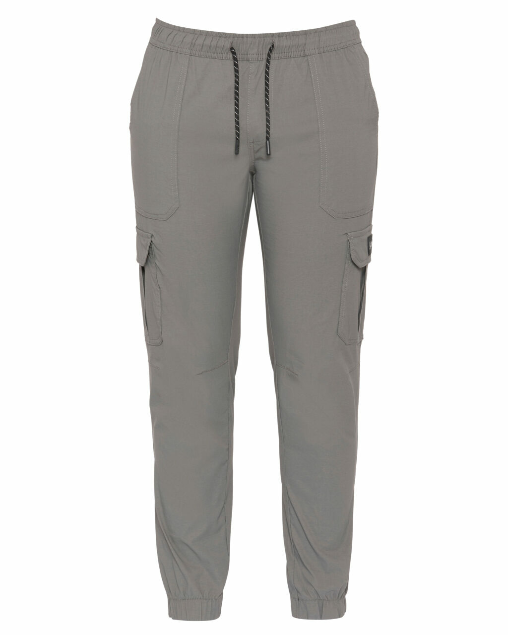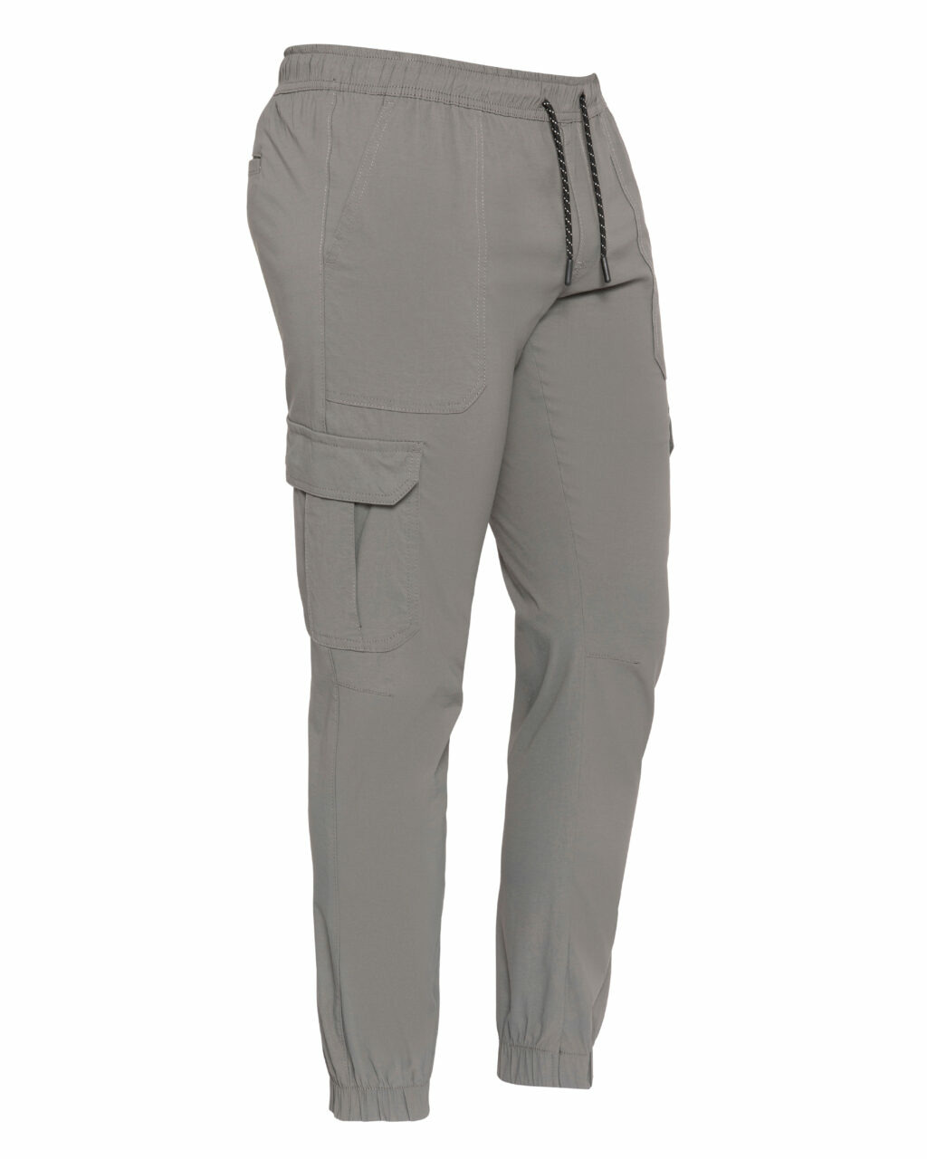 Fabriqué à 95% en nylon et 5% en lycra, ce pantalon combine robustesse et élasticité. Il dispose d’une taille élastique avec cordon de serrage, de bas de jambes élastiqués et de plusieurs poches pratiques pour un usage quotidien.