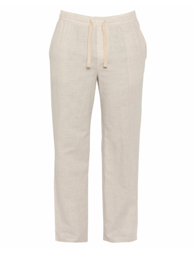 Ce pantalon associe 55 % lin et 45 % coton pour offrir une sensation de fraîcheur et une excellente respirabilité, idéale par temps chaud. Sa taille élastiquée munie d’un cordon de serrage garantit un ajustement parfait sans contrainte, tandis que ses poches latérales pratiques ajoutent une touche fonctionnelle à son design épuré. Facile à porter, il se marie aussi bien avec une chemise légère qu’un t-shirt casual ou un polo.