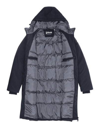 Cette parka longue jusqu’aux genoux vous enveloppe d’une isolation thermique optimale grâce à son matelassage intérieur. Sa capuche ajustée et ses fermetures éclair étanches vous garantissent une protection efficace contre le vent et la pluie. Le logo Schott NYC brodé sur la manche souligne son authenticité et son style intemporel.