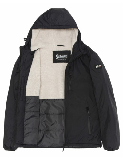 Matière principale 100 % nylon, doublure et rembourrage 100 % polyester. Fermeture zippée. Une poche poitrine zippée, deux poches basses zippées, une poche intérieure zippée et une poche intérieure pressionnée. Capuche fixe doublée sherpa avec cordon de serrage. Poignets élastiqués. Coupe confort.