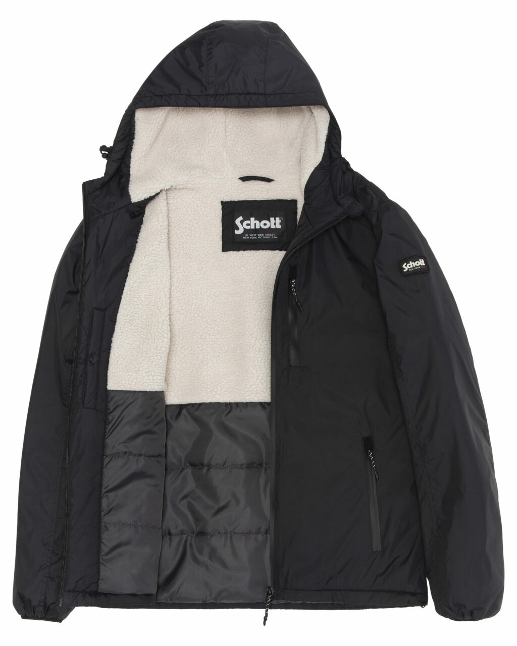 Profitez d’une protection complète contre les intempéries avec une fermeture zippée robuste et une capuche ajustable. Le badge Schott NYC sur la manche gauche affirme votre choix d’une marque emblématique, synonyme de qualité et d’authenticité.