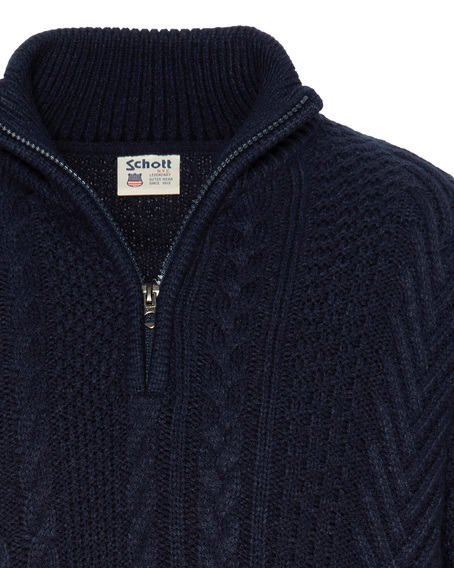 Profitez d’un vêtement pratique avec son col montant zippé ajustable qui vous permet de moduler la chaleur et le style selon vos envies. Le pull PLALTAI allie confort grâce à sa composition en acrylique et laine, et authenticité avec un logo discret Schott sur la manche, symbole de qualité et de durabilité.