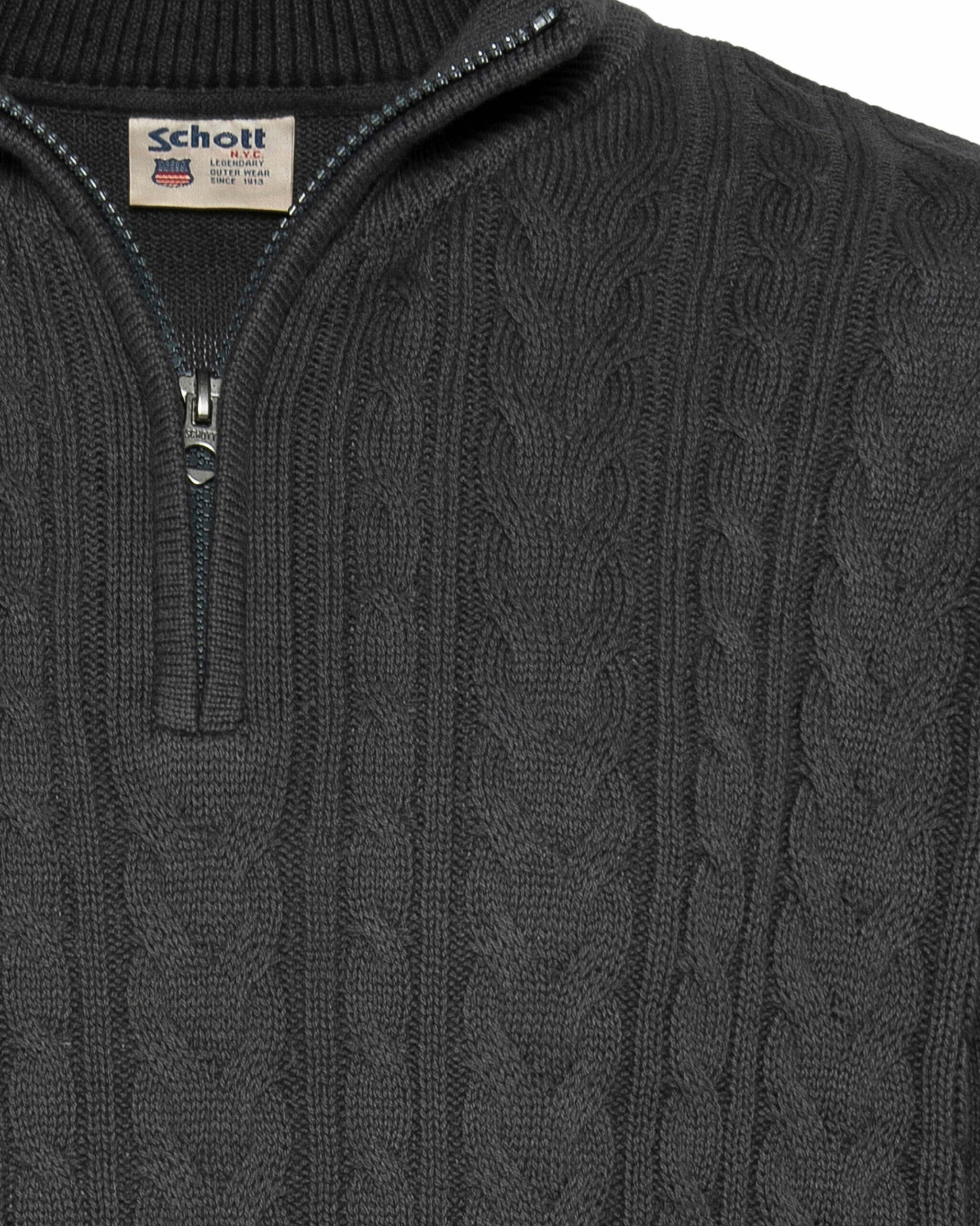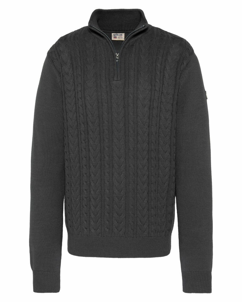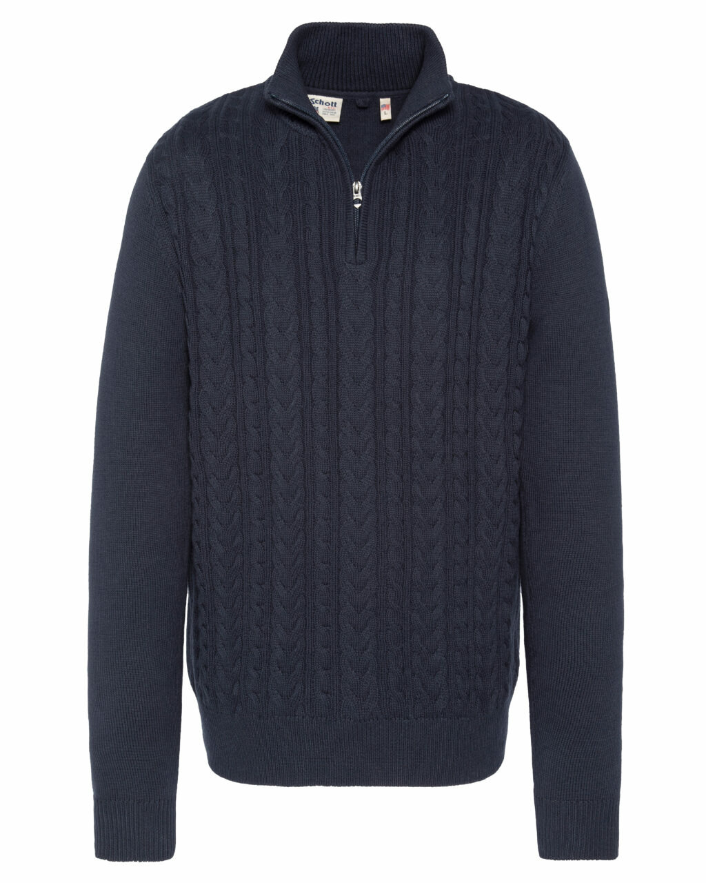 Le pull col camionneur PLFIRE2 de Schott NYC allie élégance intemporelle et confort optimal. Sa maille torsadée et son col zippé apportent une touche moderne à un classique revisité.