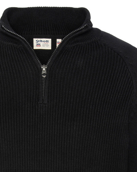Confectionné en maille épaisse 100% coton, ce pull assure une isolation optimale tout en restant respirant. Son col montant zippé offre une touche pratique et ajustable, parfaite pour moduler votre tenue selon la météo. Les finitions côtelées aux poignets et à l’ourlet garantissent un maintien impeccable et renforcent la protection contre les courants d’air. Discret et élégant, le logo Schott apposé sur la manche signe l’authenticité de ce vêtement durable.