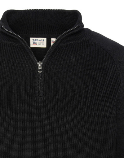 Matière : 100% coton. Fermeture zippée au col. Finitions en bord-côte aux poignets et à la base. Logo Schott NYC® brodé sur la manche gauche.