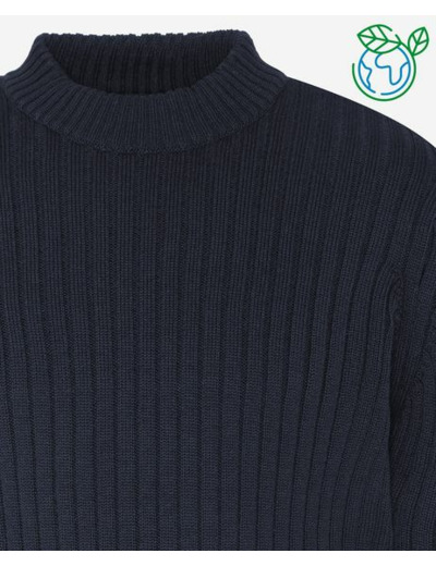 Ce pull en maille épaisse et texturée se distingue par sa coupe ajustée et son design minimaliste, parfait pour s’adapter à toutes vos tenues, du casual au plus formel. Fabriqué à partir de coton et polyester recyclés, il incarne une mode durable sans compromis sur la qualité ni sur le style.