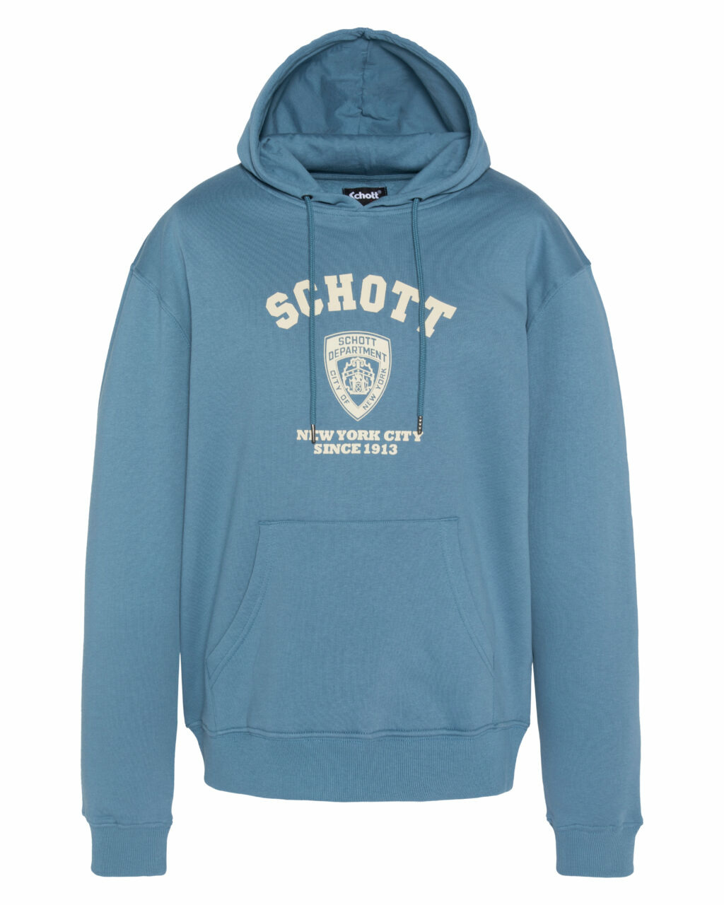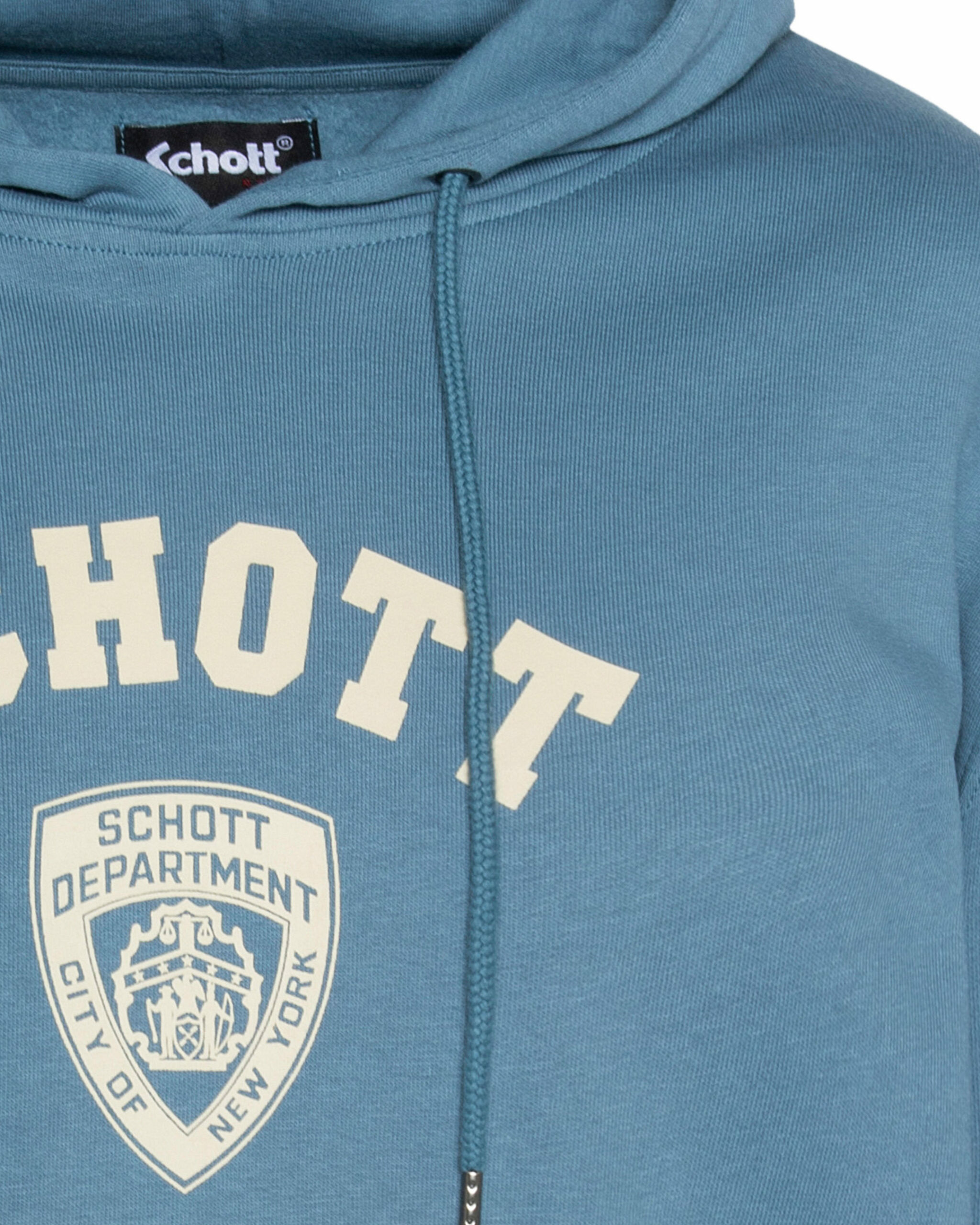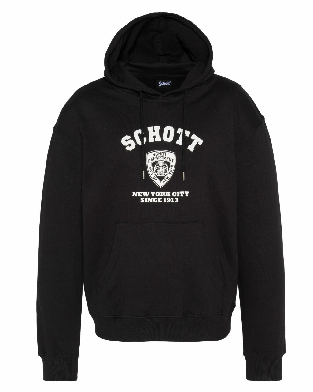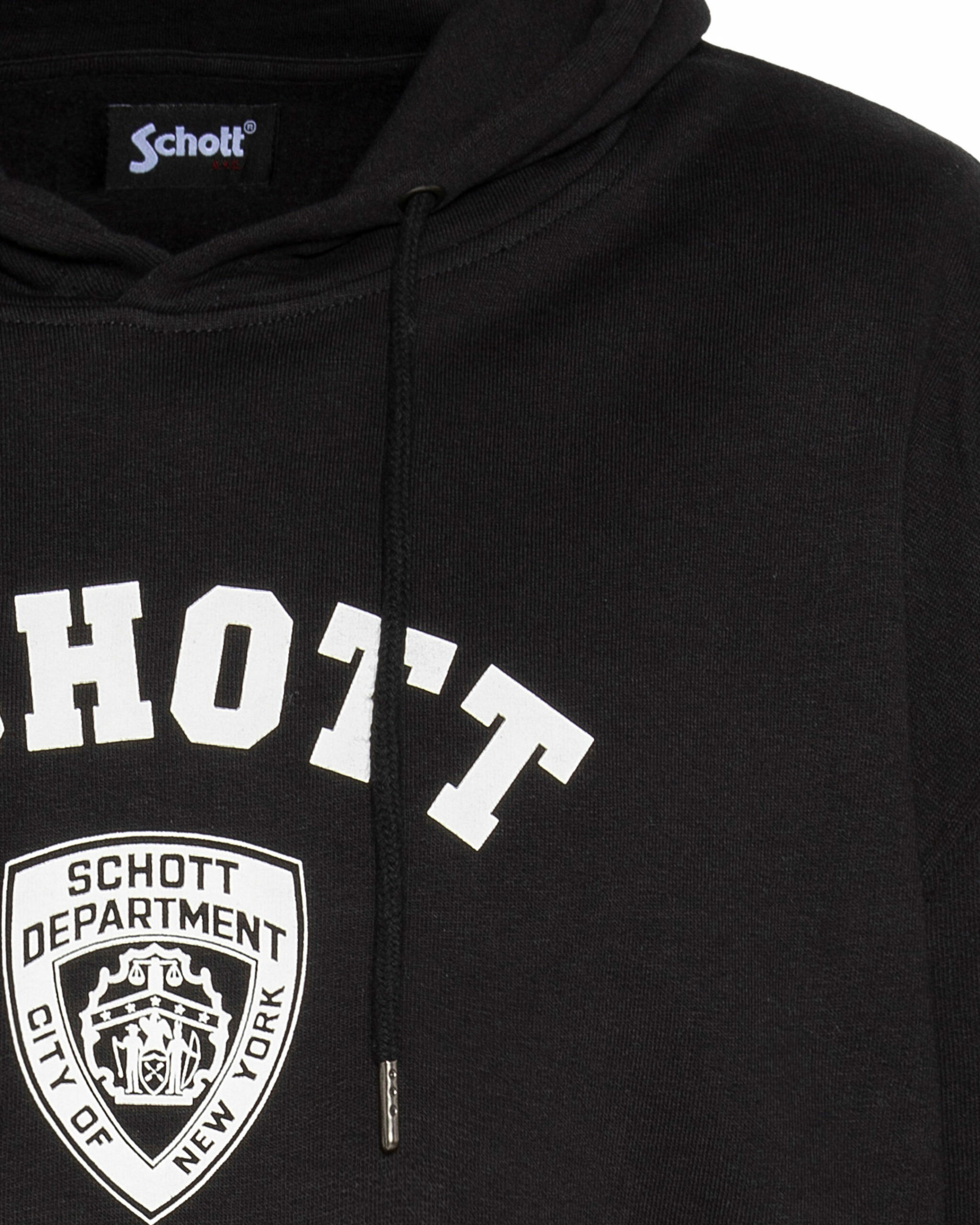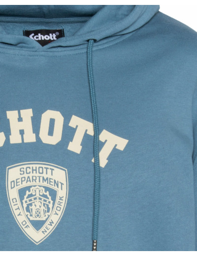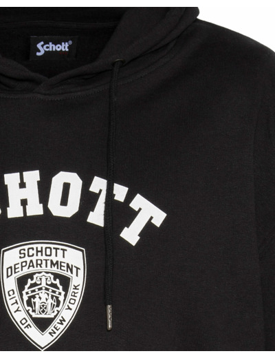 Composé de 80% coton et 20% polyester, il dispose d’une capuche ajustable avec cordons, d’une poche kangourou centrale et de finitions bords-côtes aux poignets et à la taille. L’imprimé poitrine type écusson SCHOTT DEPARTMENT complète son design soigné.