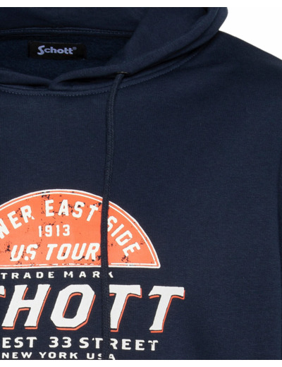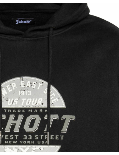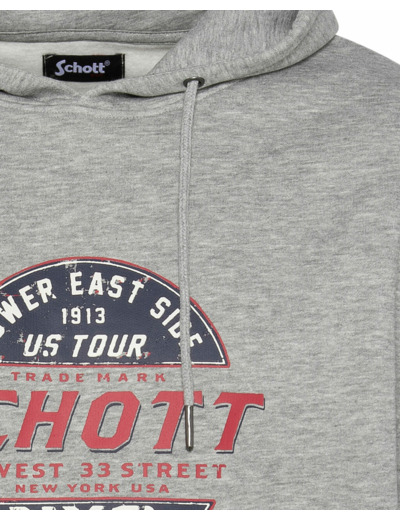 Conçu pour durer, ce sweat s’inspire du streetwear new-yorkais avec un grand logo Schott NYC à l’avant, légèrement vieilli pour un effet rétro. Sa capuche ajustable avec cordons et sa poche kangourou pratique répondent aux besoins du quotidien tout en renforçant son style unique. Polyvalent, il se marie aussi bien avec un jean brut et des baskets qu’avec un jogging, s’adaptant à toutes les saisons et occasions.