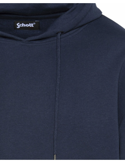Composition : 80% coton, 20% polyester. Capuche ajustable avec cordons. Poche kangourou frontale. Finitions bord-côtes aux poignets et à la taille. Logo Schott NYC discret sur la manche. Coupe droite.