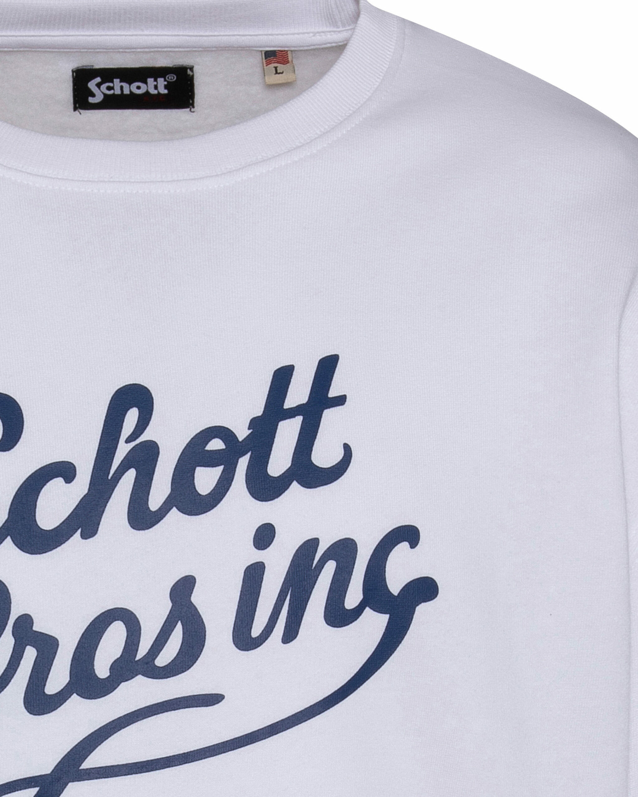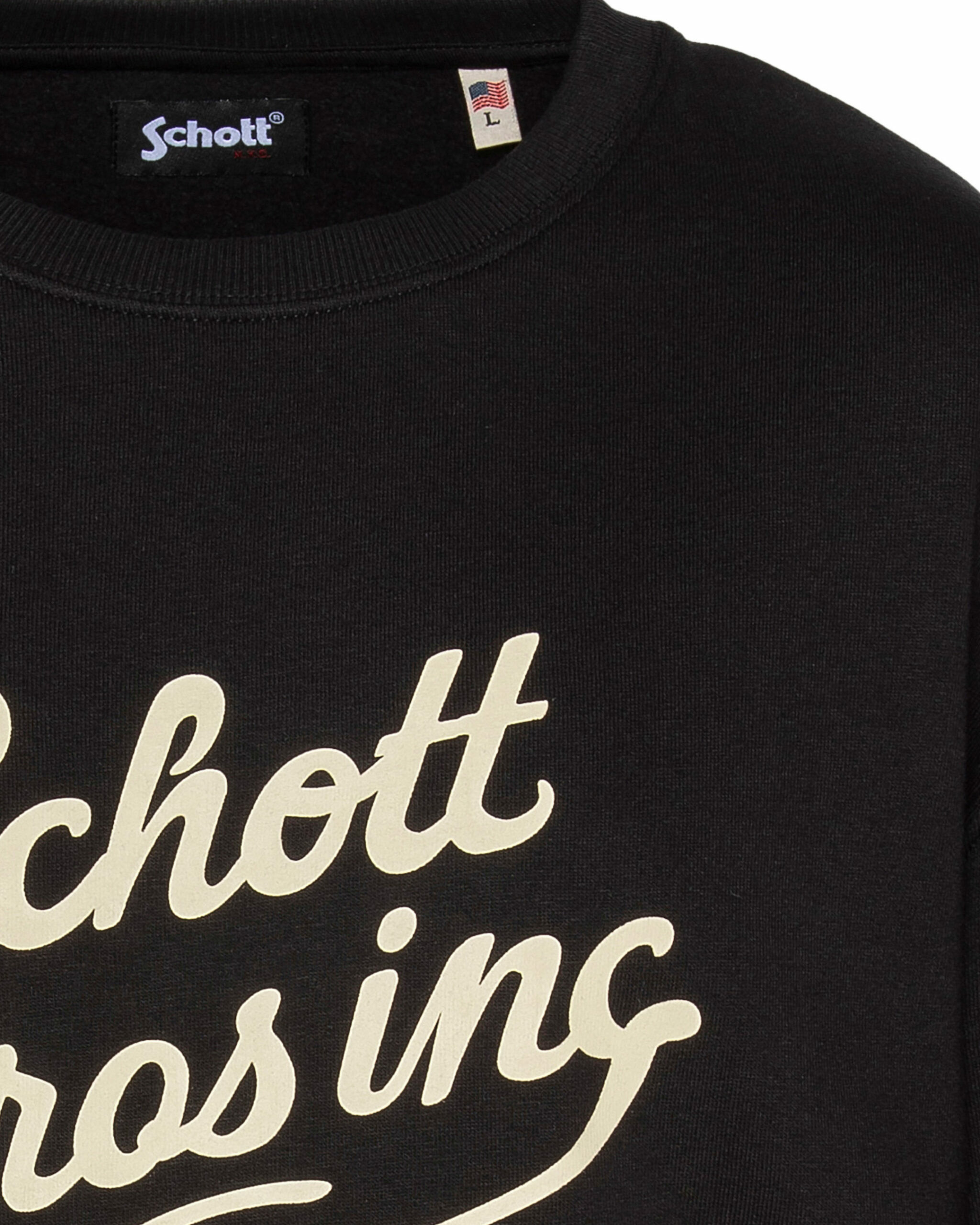 Composé à 80% de coton et 20% de polyester, le sweat SWDELI présente un col rond intemporel, une coupe droite moderne, un imprimé Schott Bros inc sur le devant, ainsi que des finitions bords-côtes aux poignets et à la taille pour un ajustement parfait.