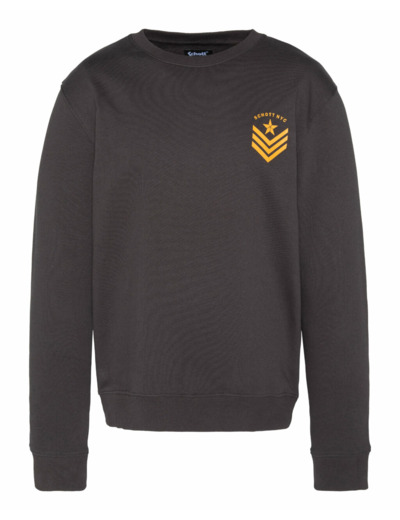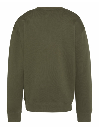 Composé à 80% de coton et 20% de polyester, ce sweat présente une coupe droite avec col rond, des finitions en bords-côtes aux poignets et à la taille, ainsi qu’un motif army distinctif sur la poitrine gauche. Il ne comporte pas de fermeture ni de poches.