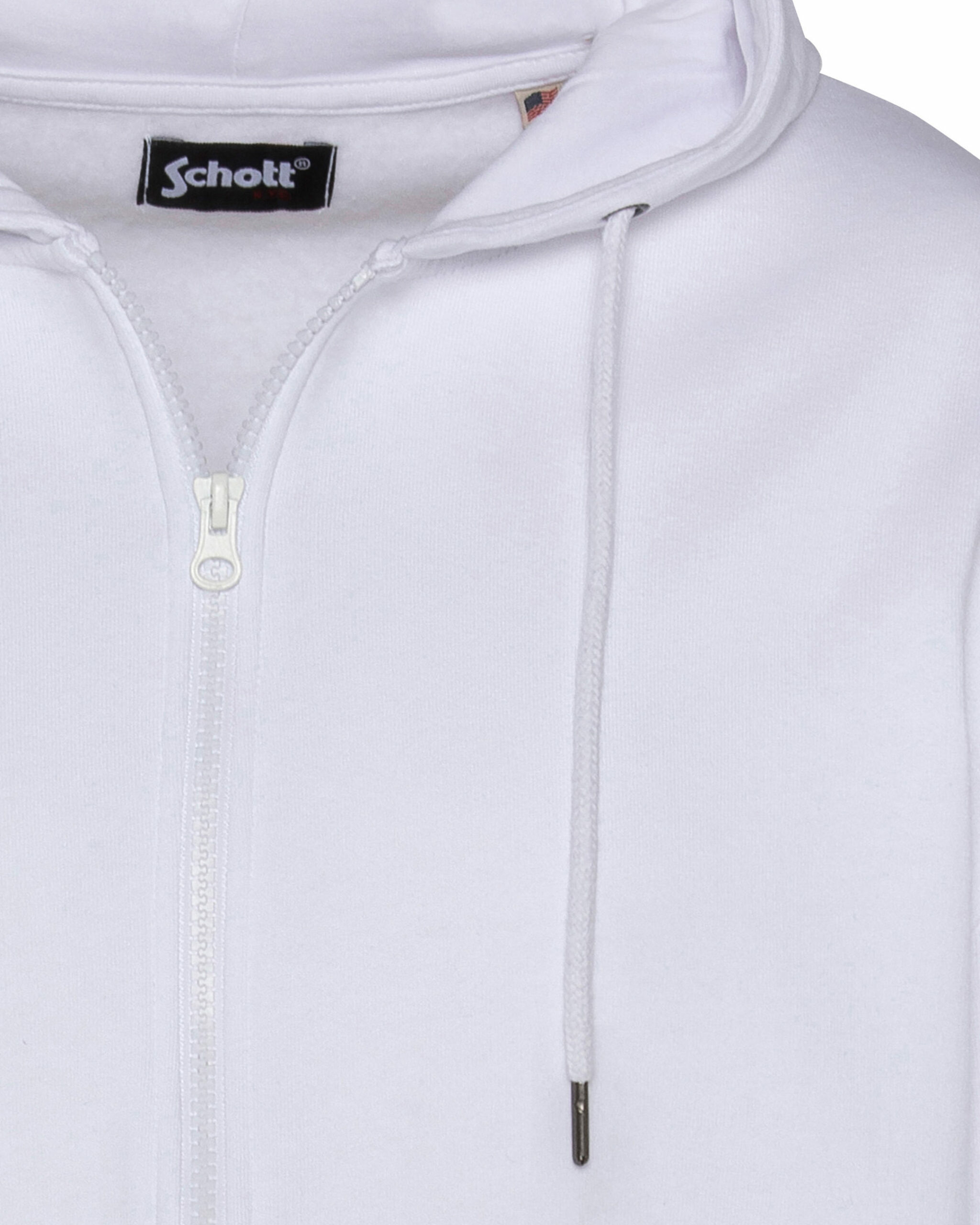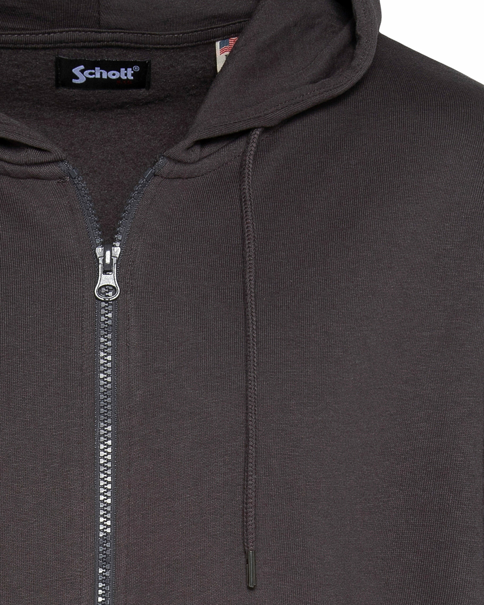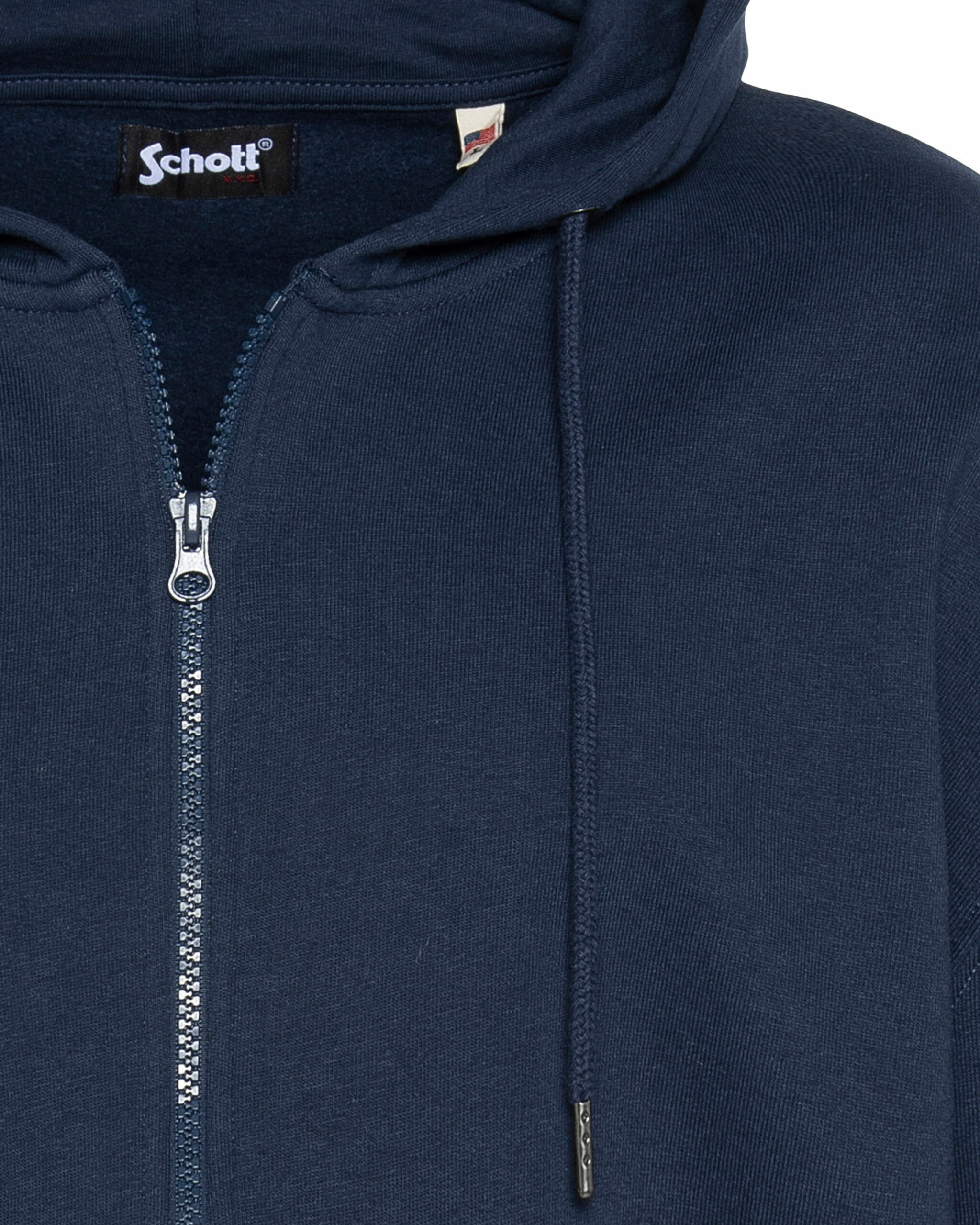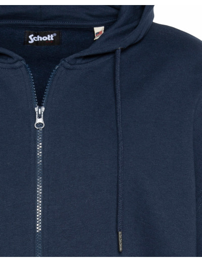 Conçu en 80% coton et 20% polyester, ce hoodie assure douceur et résistance au quotidien. Sa fermeture zippée intégrale et sa capuche ajustable avec cordons offrent praticité et protection contre les intempéries. Les poches kangourou latérales apportent un espace fonctionnel pour garder vos mains au chaud ou ranger vos petits objets. Le patch logo Schott NYC sur la manche souligne l’authenticité et l’héritage de la marque américaine.